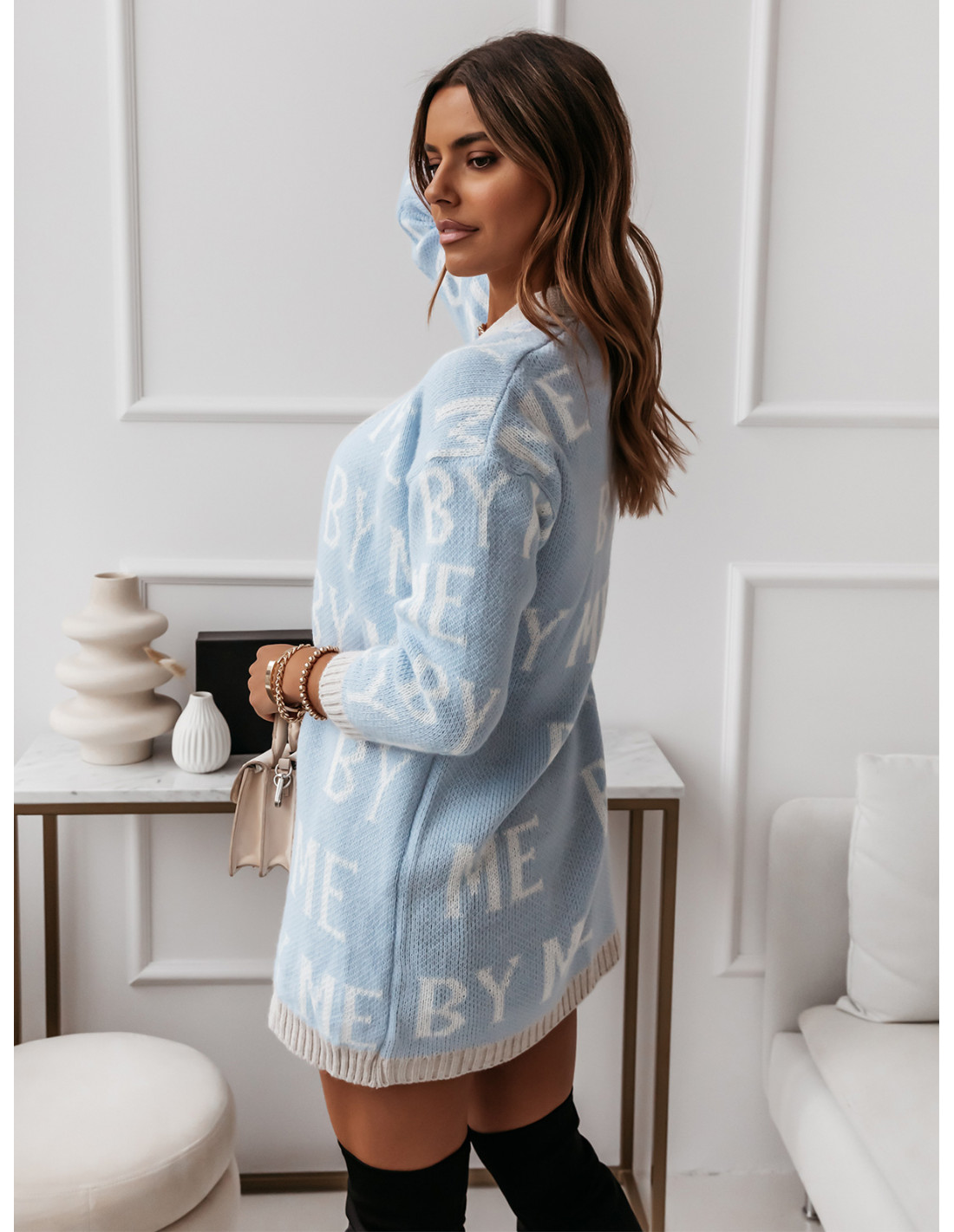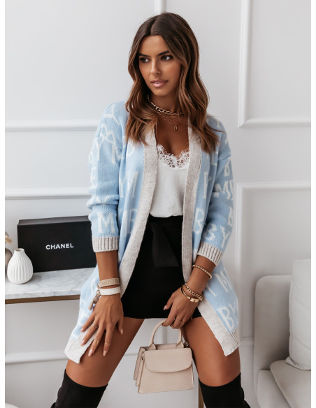 Długi kardigan z napisami BY ME - błękitny