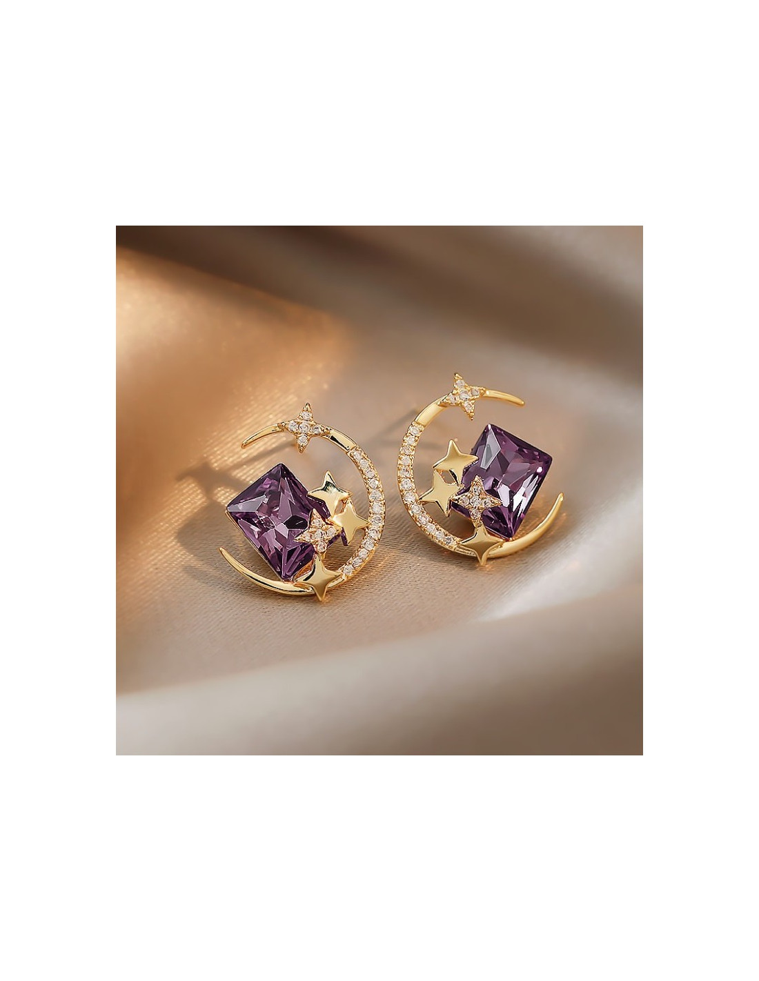 KOLCZYKI sztyfty z kryształkiem i cyrkoniami - fioletowe