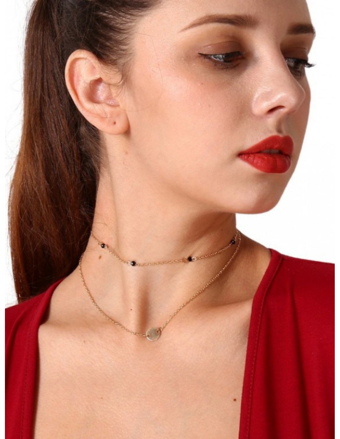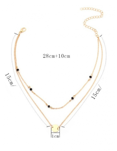 Naszyjnik delikatny multi celebrytka czarne koraliki - złoty