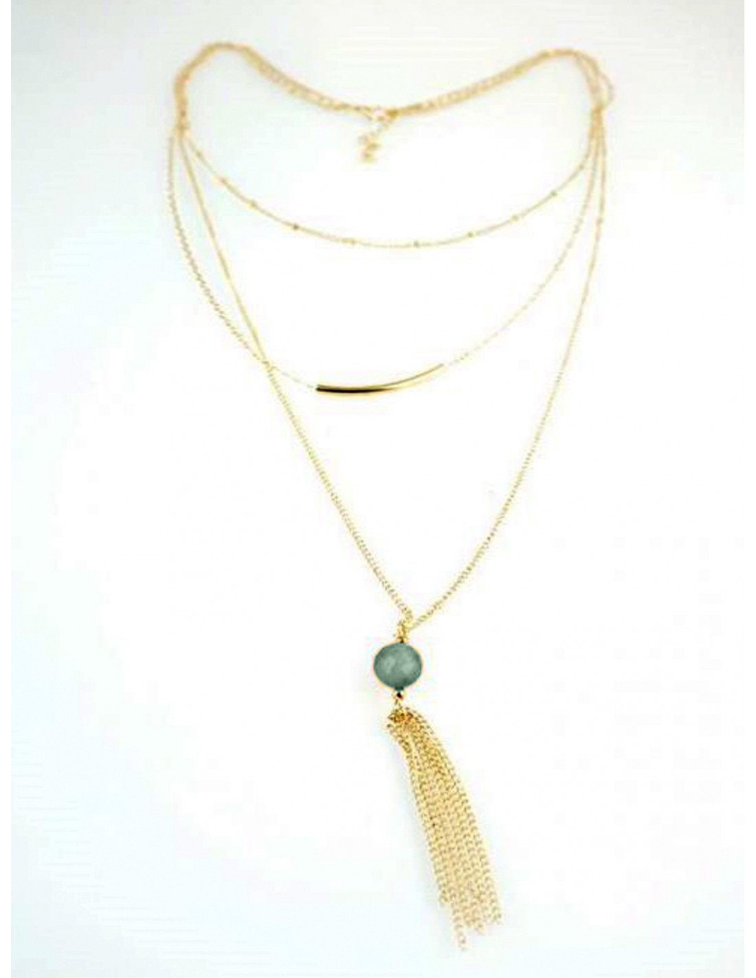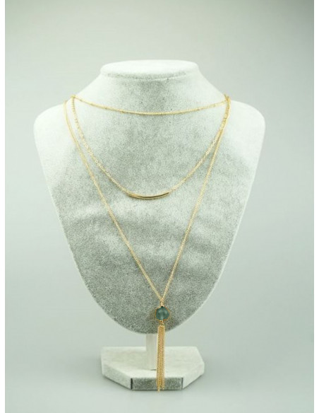 Naszyjnik długi potrójny z koralikiem - zielony