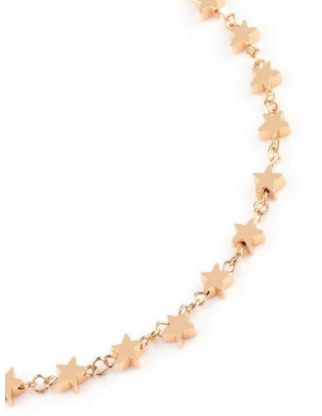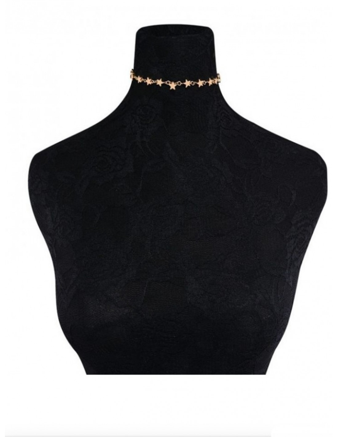 Ten delikatny naszyjnik typu choker zachwyca subtelnym motywem złotych gwiazdek, które pięknie układają się na szyi.
