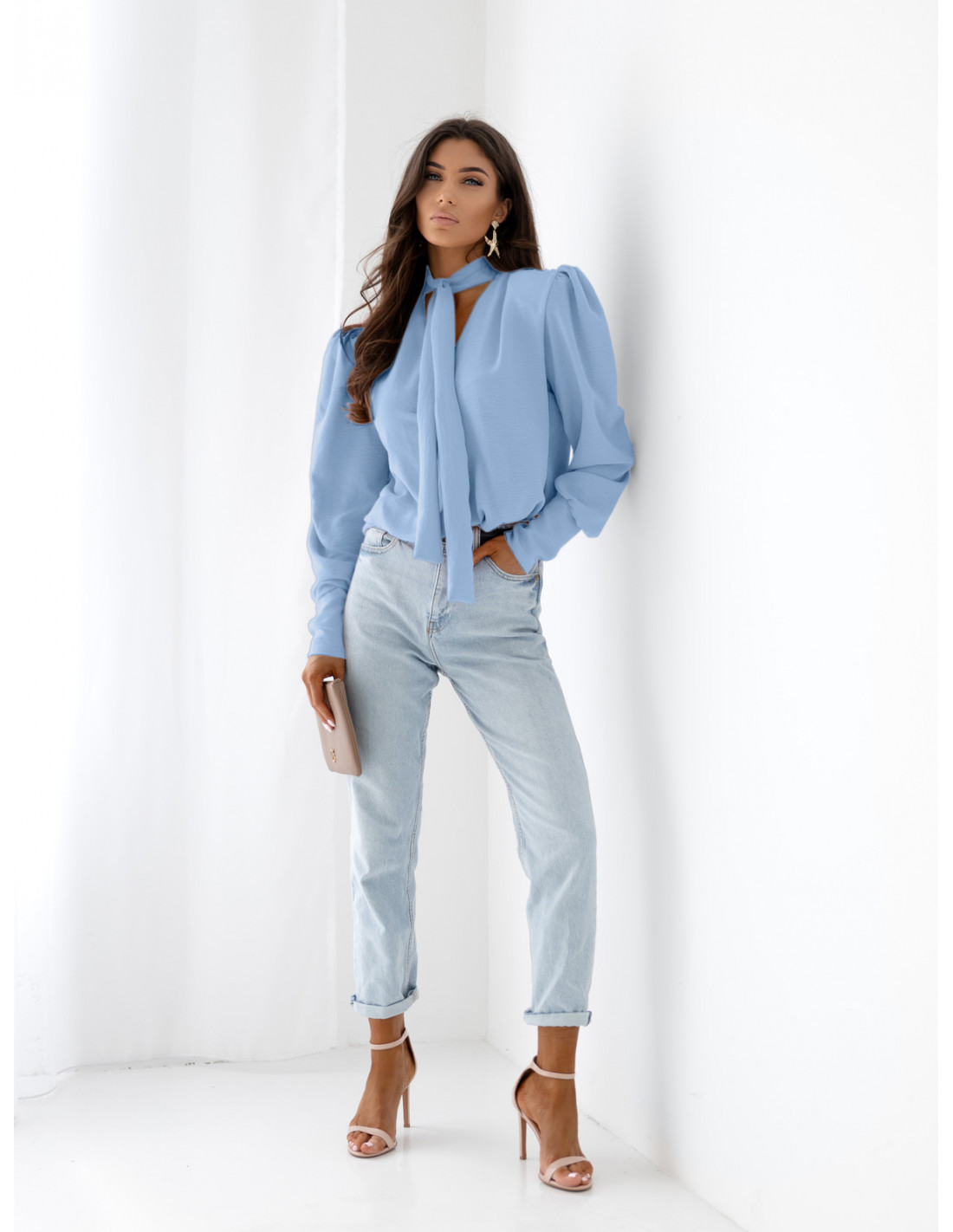 Bluzka koszulowa z wiązaniem FENZA - błękitna