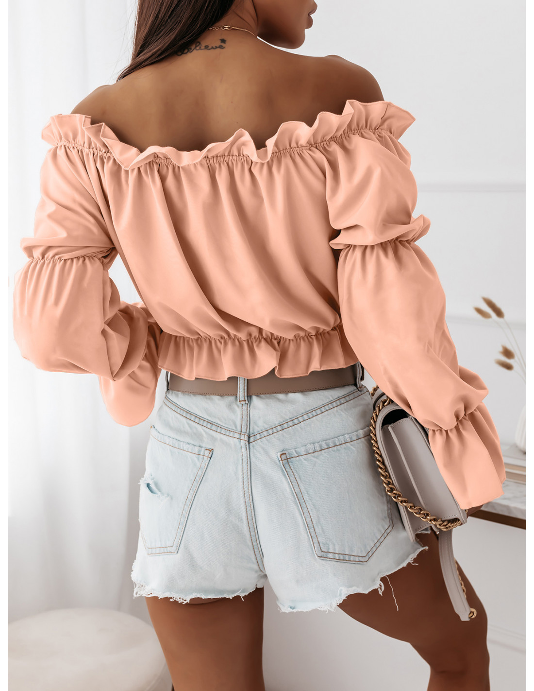 Krótka bluzka wygląda po prostu niesamowicie, dzięki bufiastym rękawką i marszczonym wykończeniem.