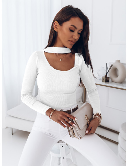 Bluzka prążkowana z chokerem - DARSEL - biała