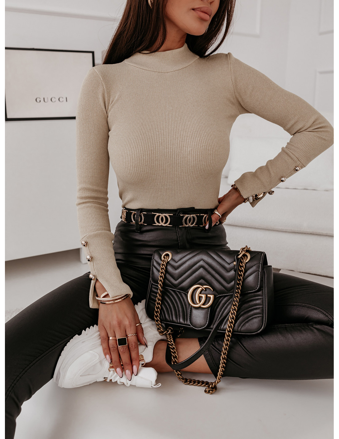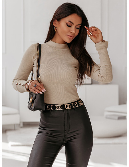 Prążkowana bluzka z półgolfem SIMMY - beżowa
