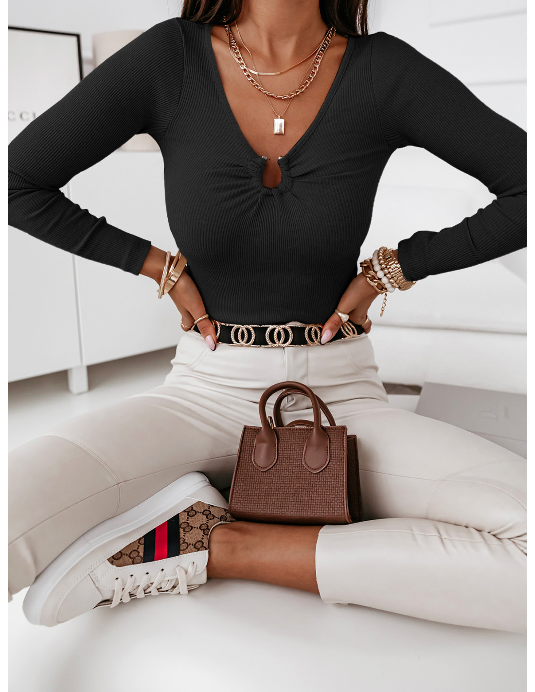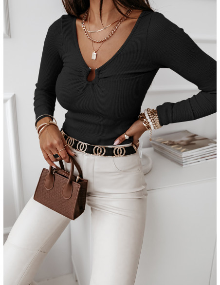 Dopasowana bluzka z ozdobnym dekoltem KLARA - czarna