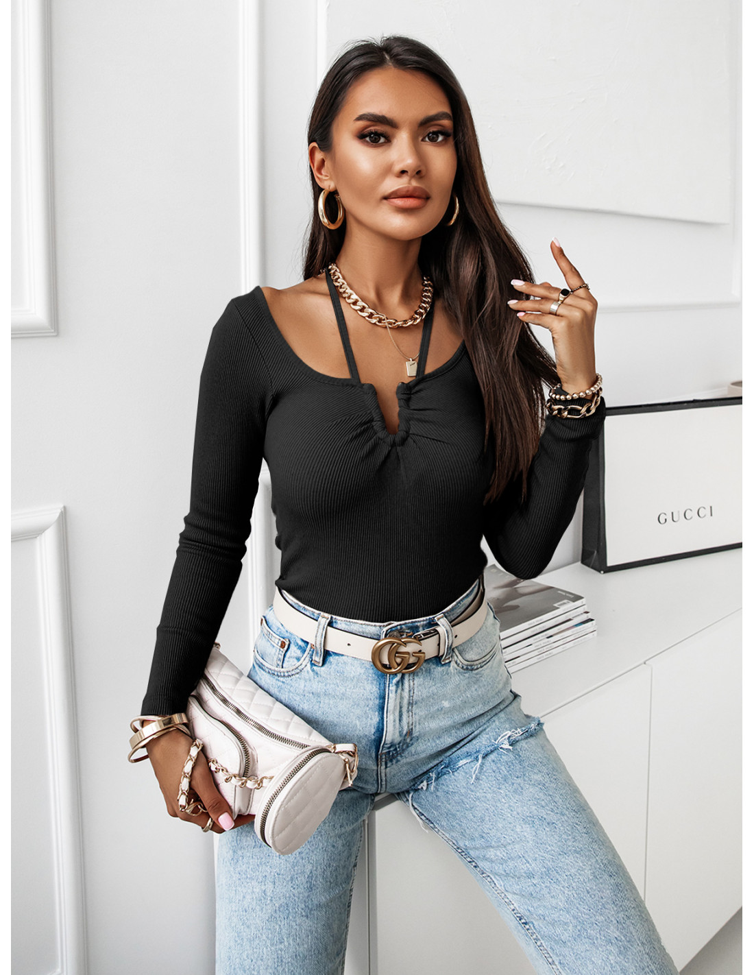 Dopasowana bluzka z ozdobnym dekoltem MAKIA - czarna
