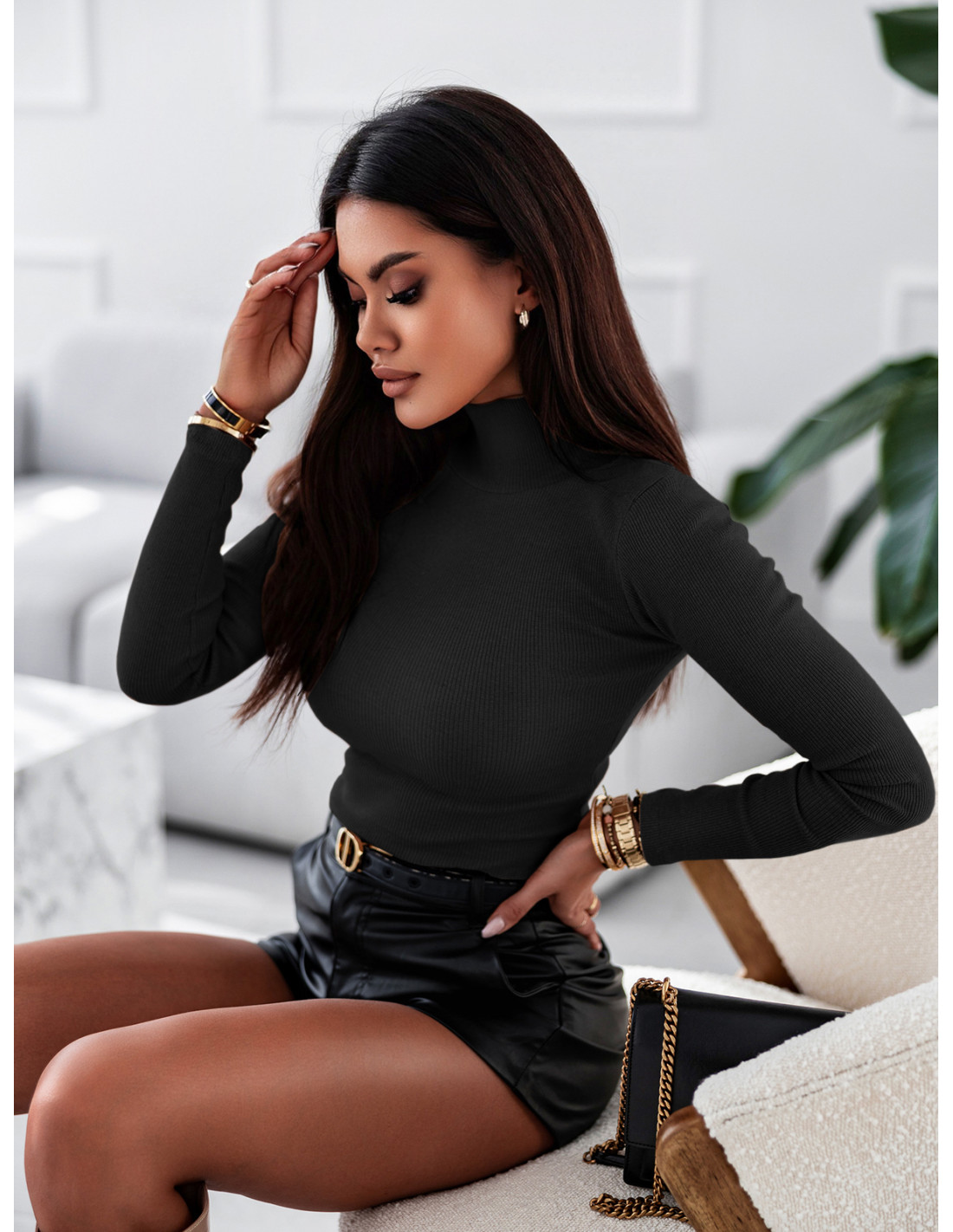 Klasyczny prążkowany golf - ALESSANDRA - czarny