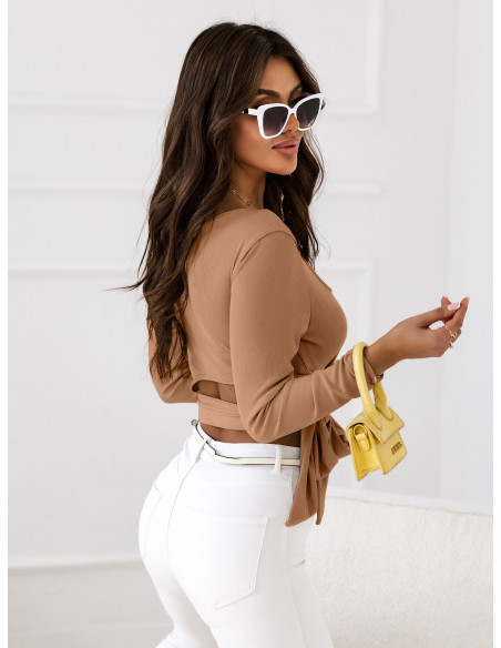 Bluzka crop top z wiązaniem - LORETA - beżowa