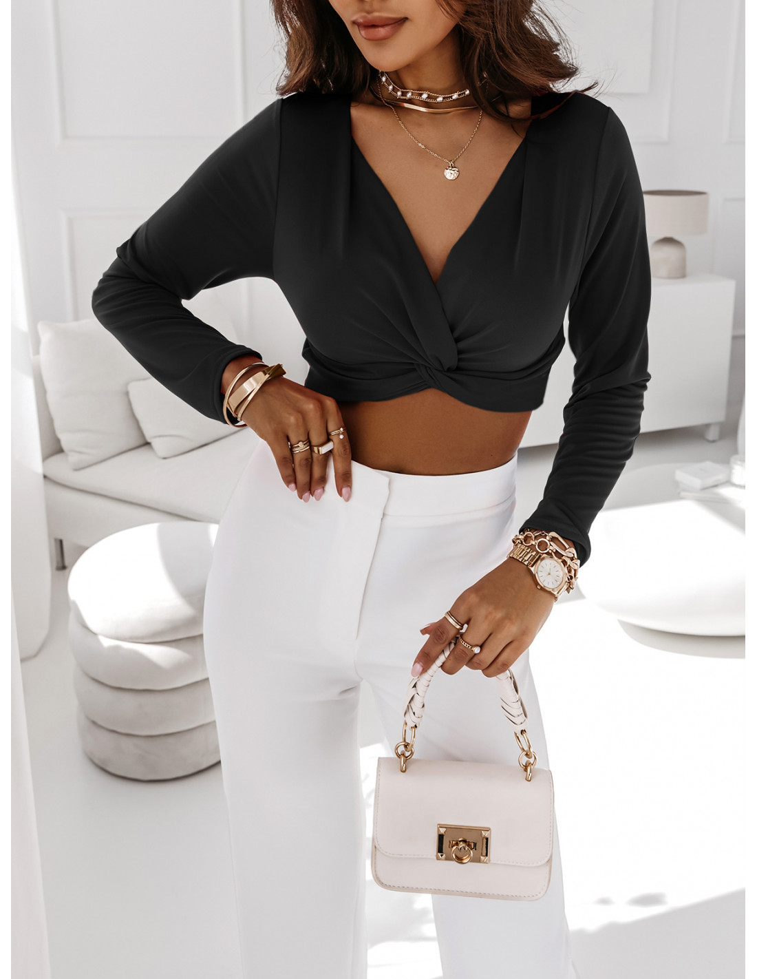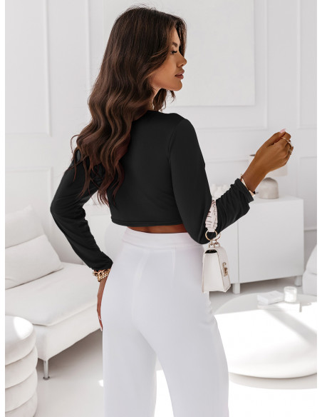 Elegancka bluzka crop top - LEVIONA - czarna