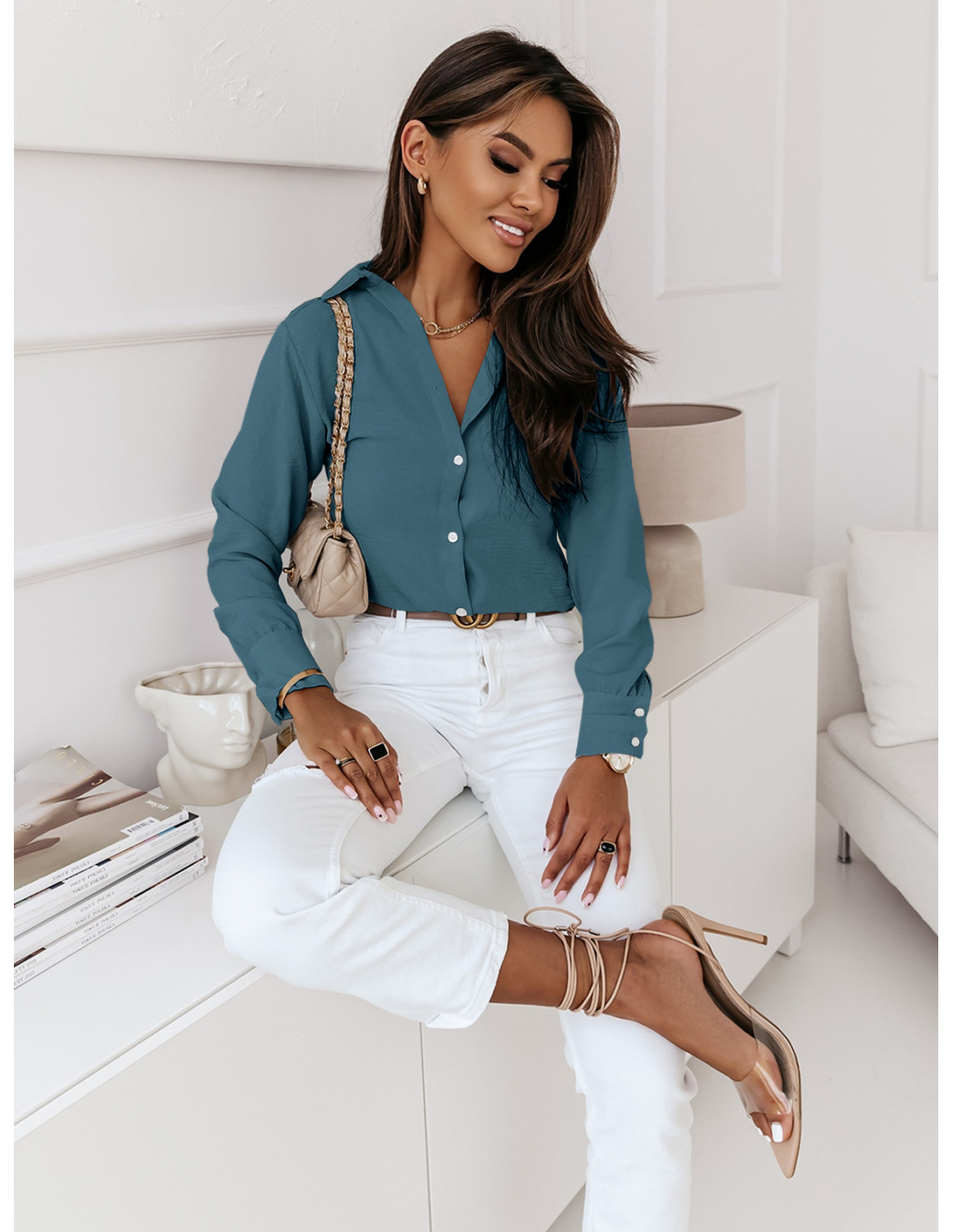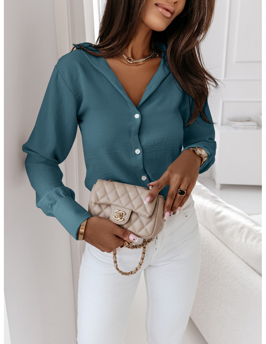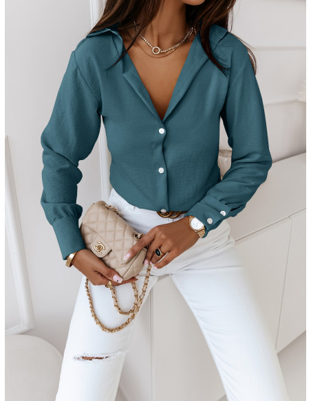 Koszulowa bluzka zapinana na guziki ADILA - turkusowa