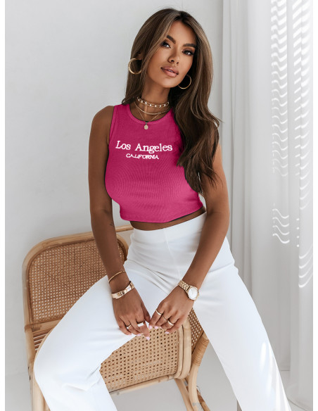 Bawełniany crop top z aplikacją LOS ANGELES - fuksjowy