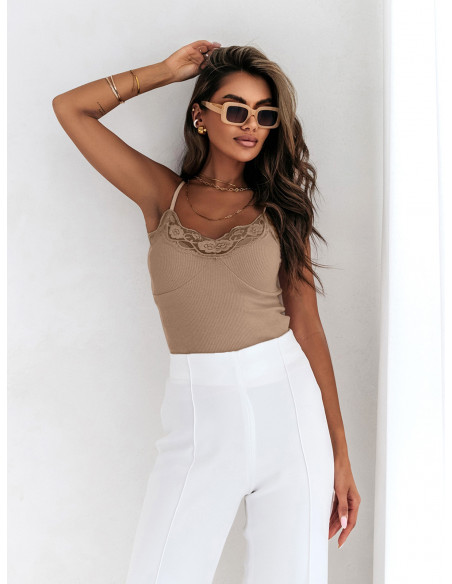 Bawełniana bluzka na wąskich ramiączkach GIULIA - beżowa