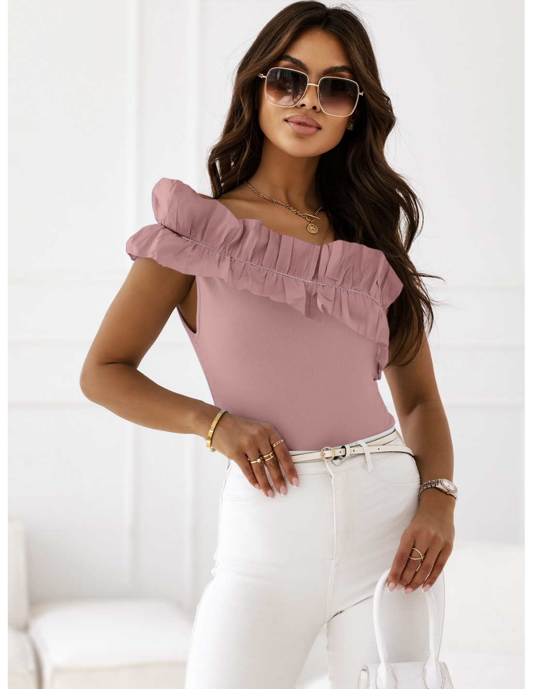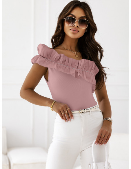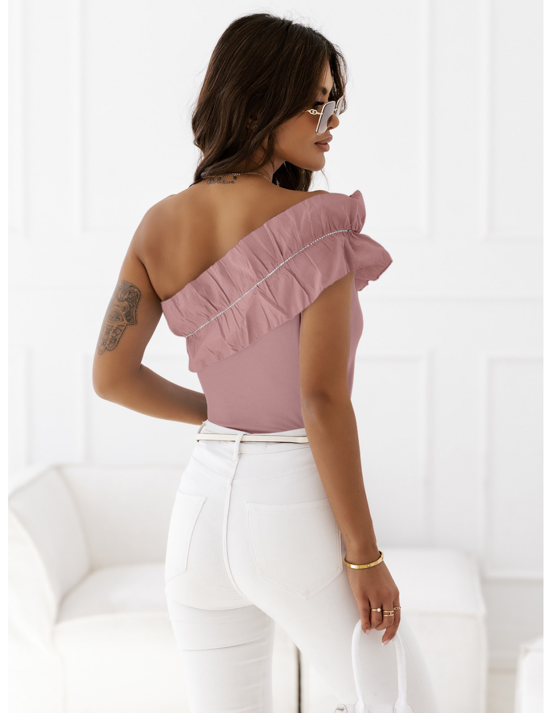Bluzka na jedno ramię z falbaną RUFFLE - brudny róż