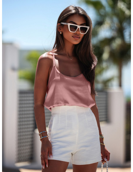 Satynowa bluzka na wąskich ramiączkach JOVANA - brudny róż