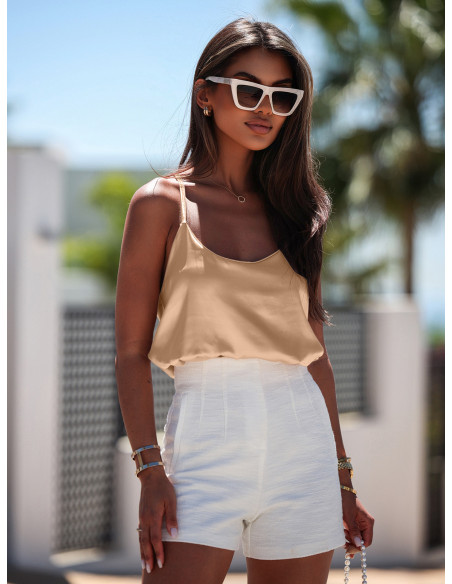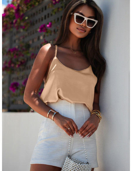 Satynowa bluzka na wąskich ramiączkach JOVANA - beżowa