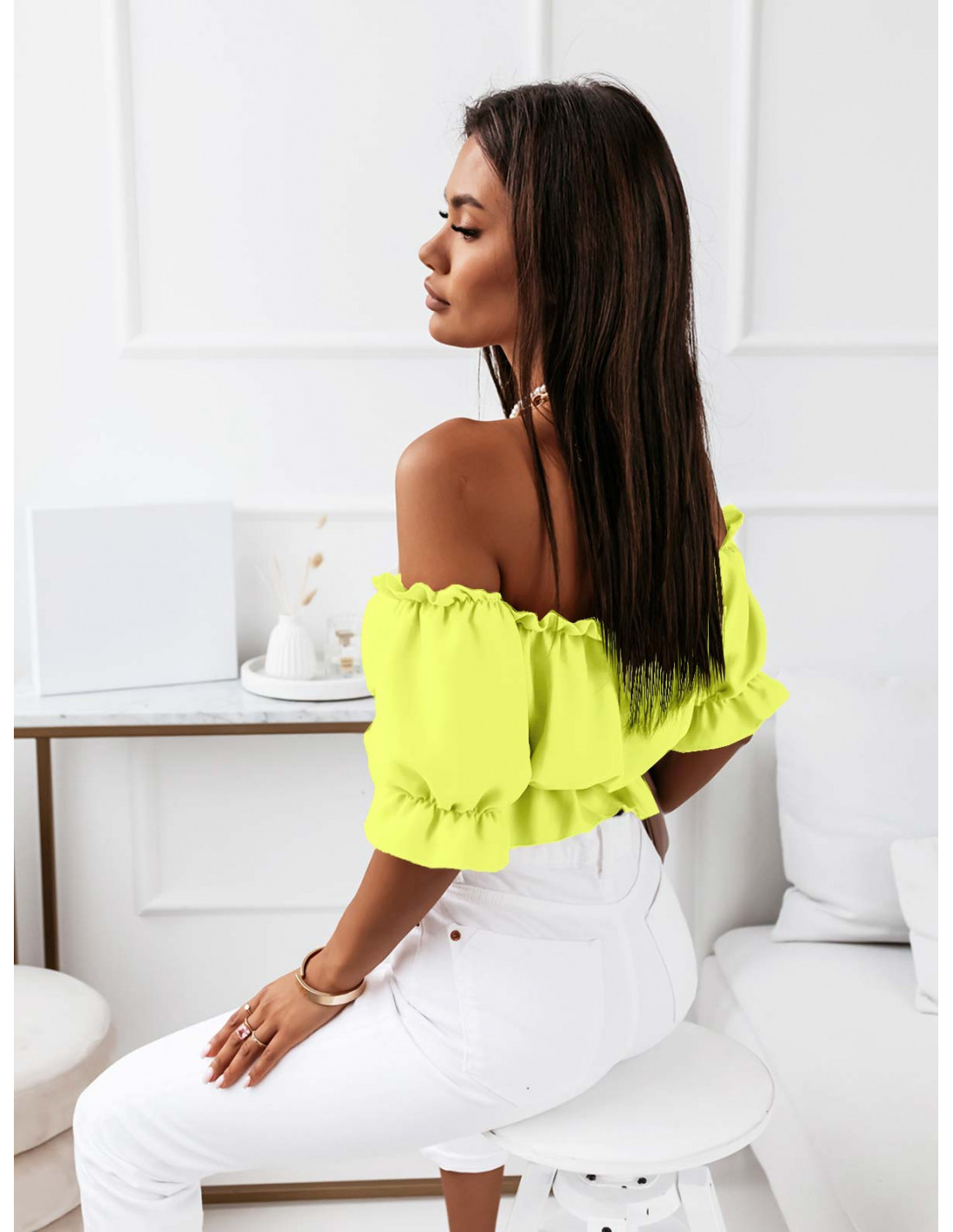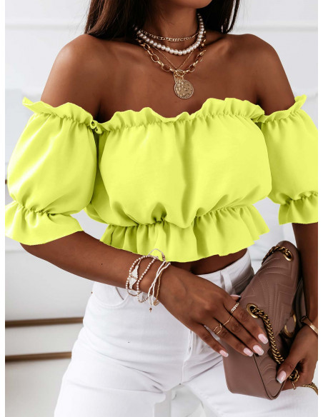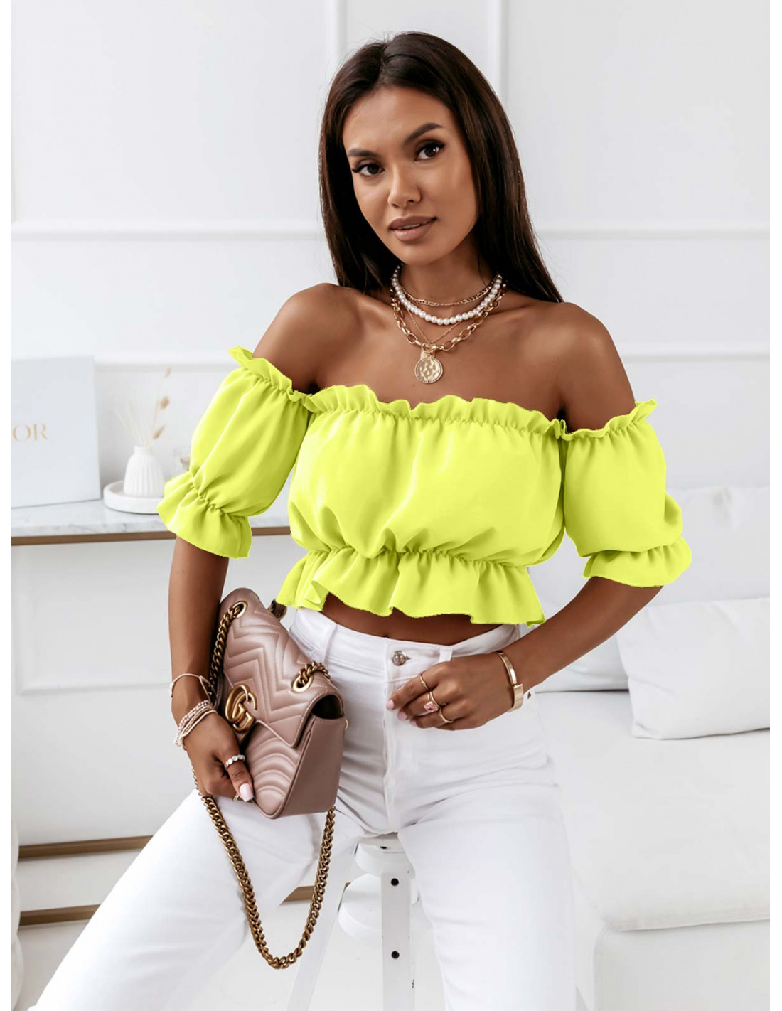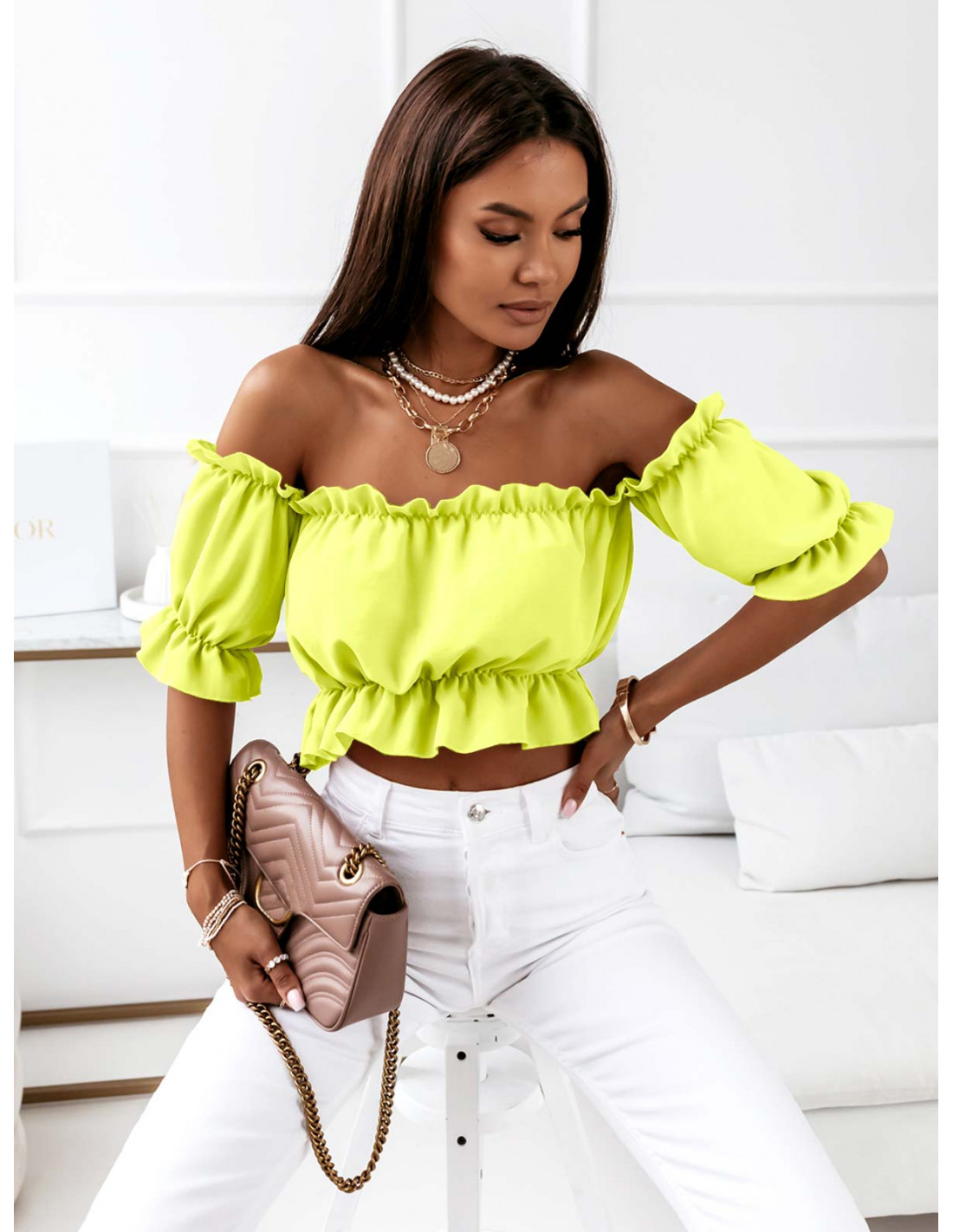 Bluzka hiszpanka z rękawkami - TERRIS - limonkowa
