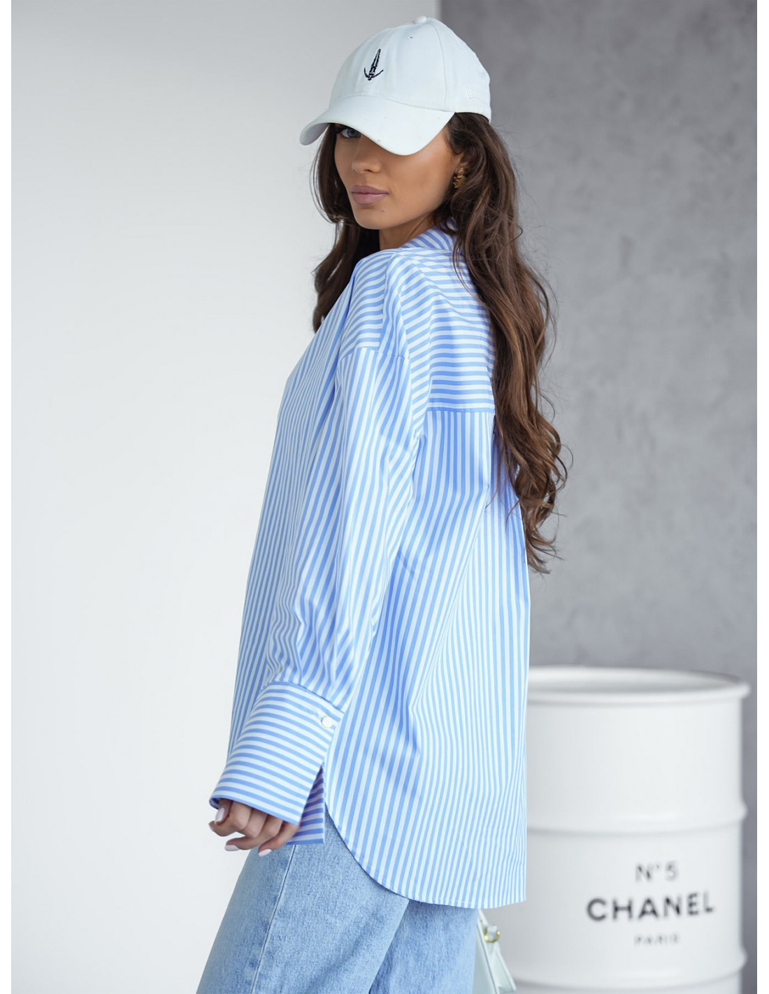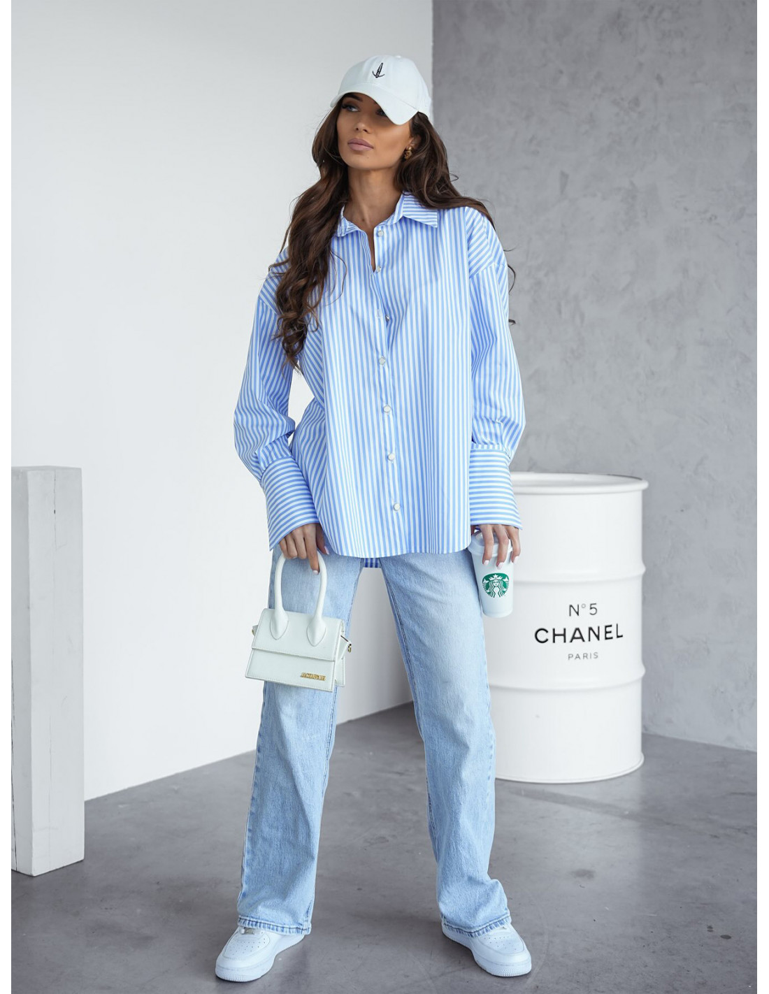 Koszula oversize z wiskozy w paski BILGA - błękitna