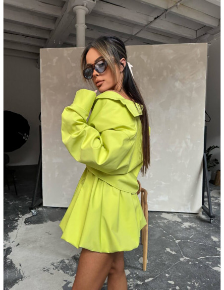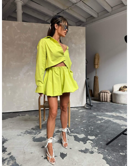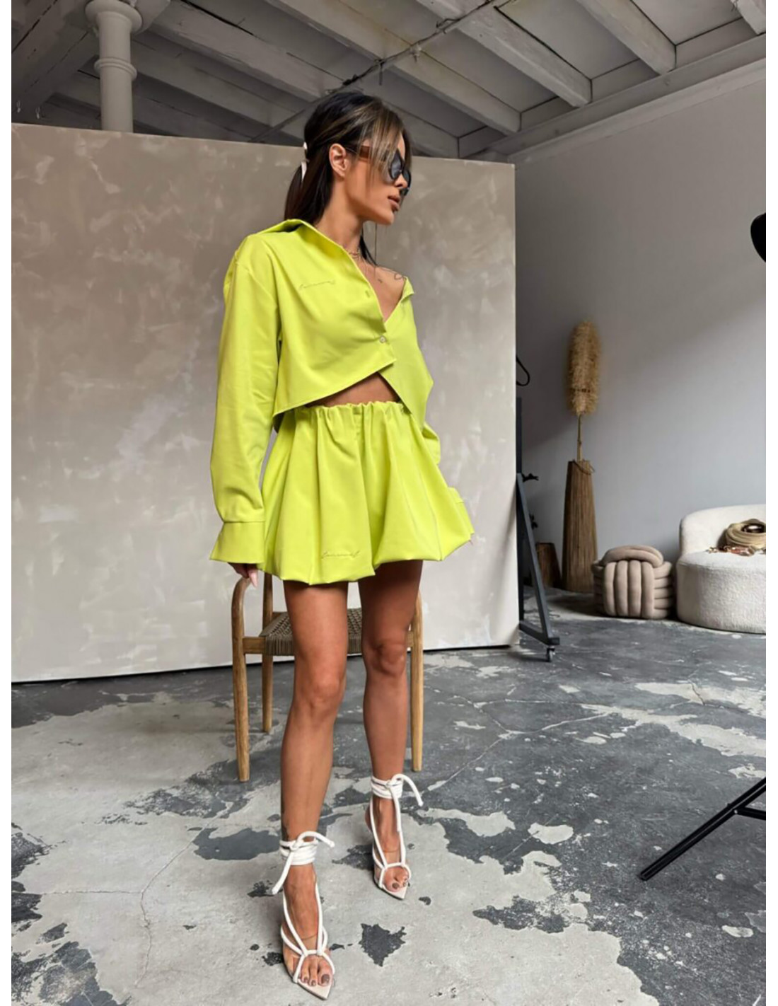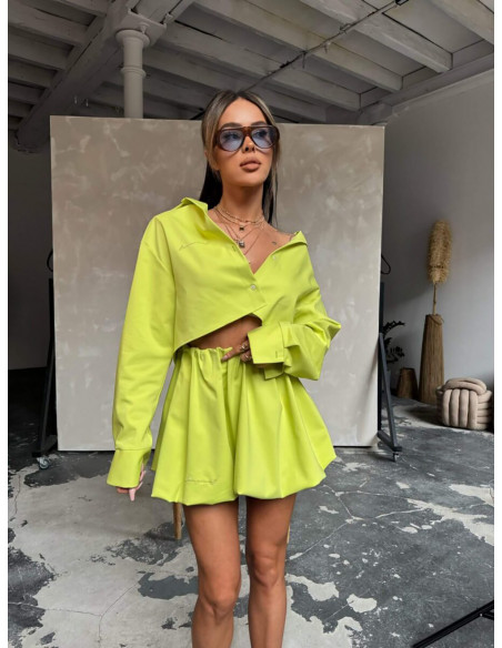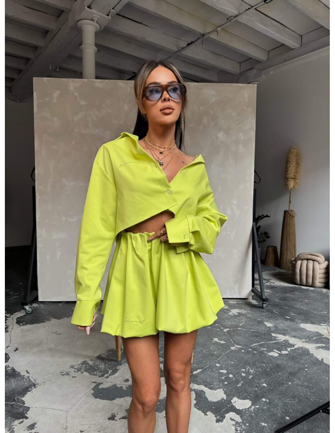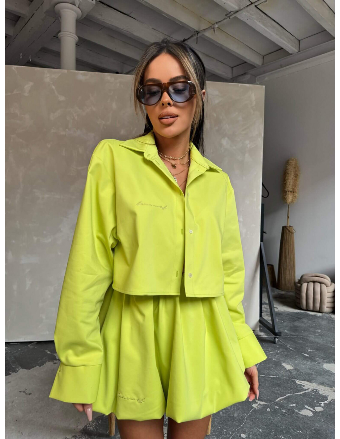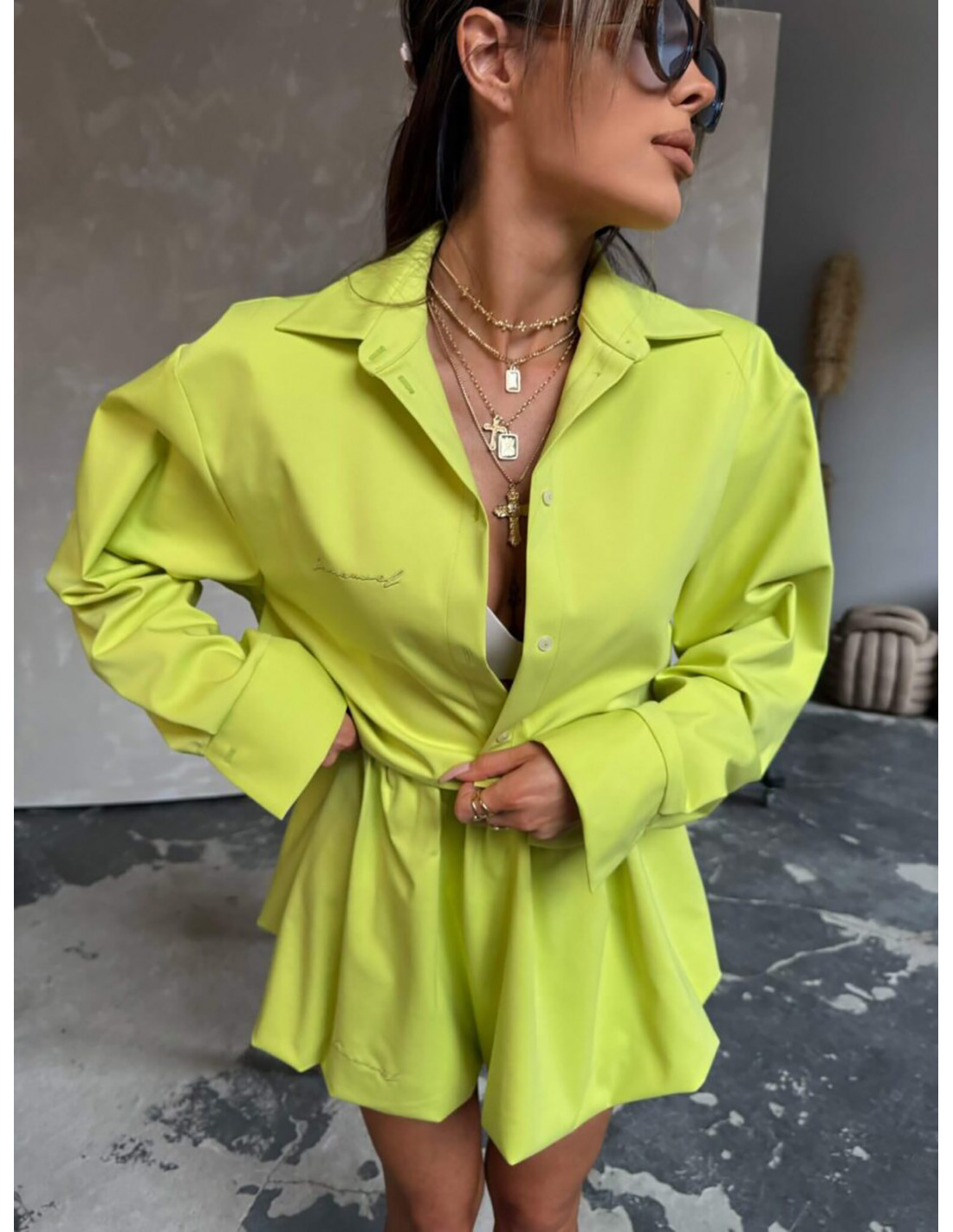 Krótka koszula oversize z bawełną IRIMA - limonkowa