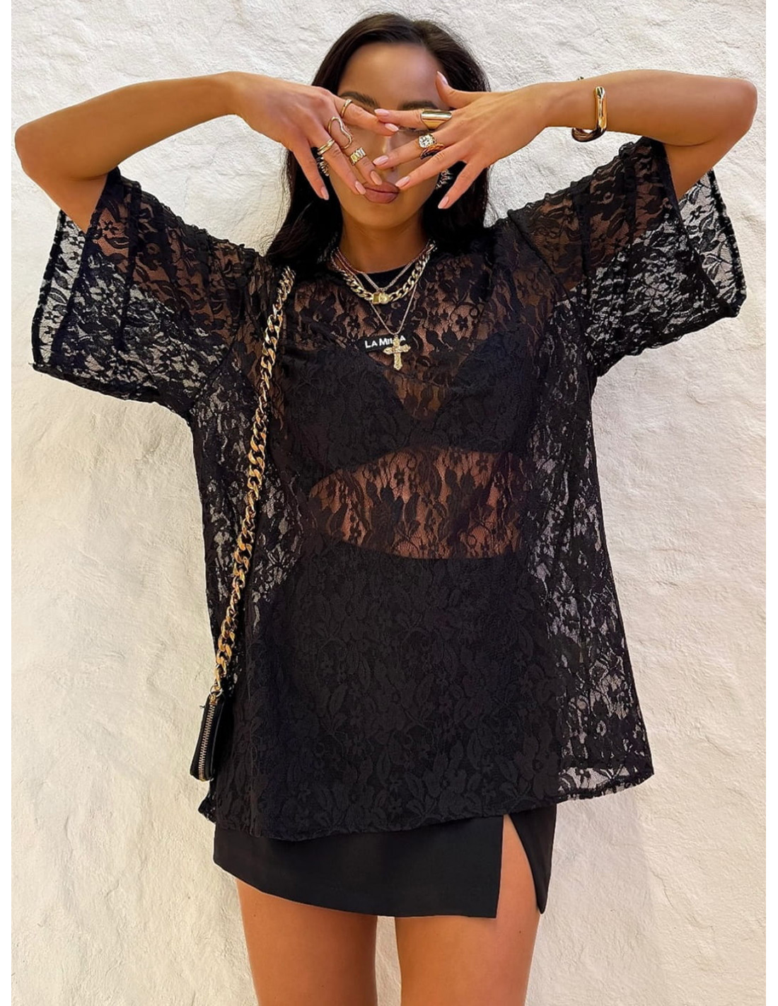 Koronkowa bluzka t-shirt MELINDRA - czarna