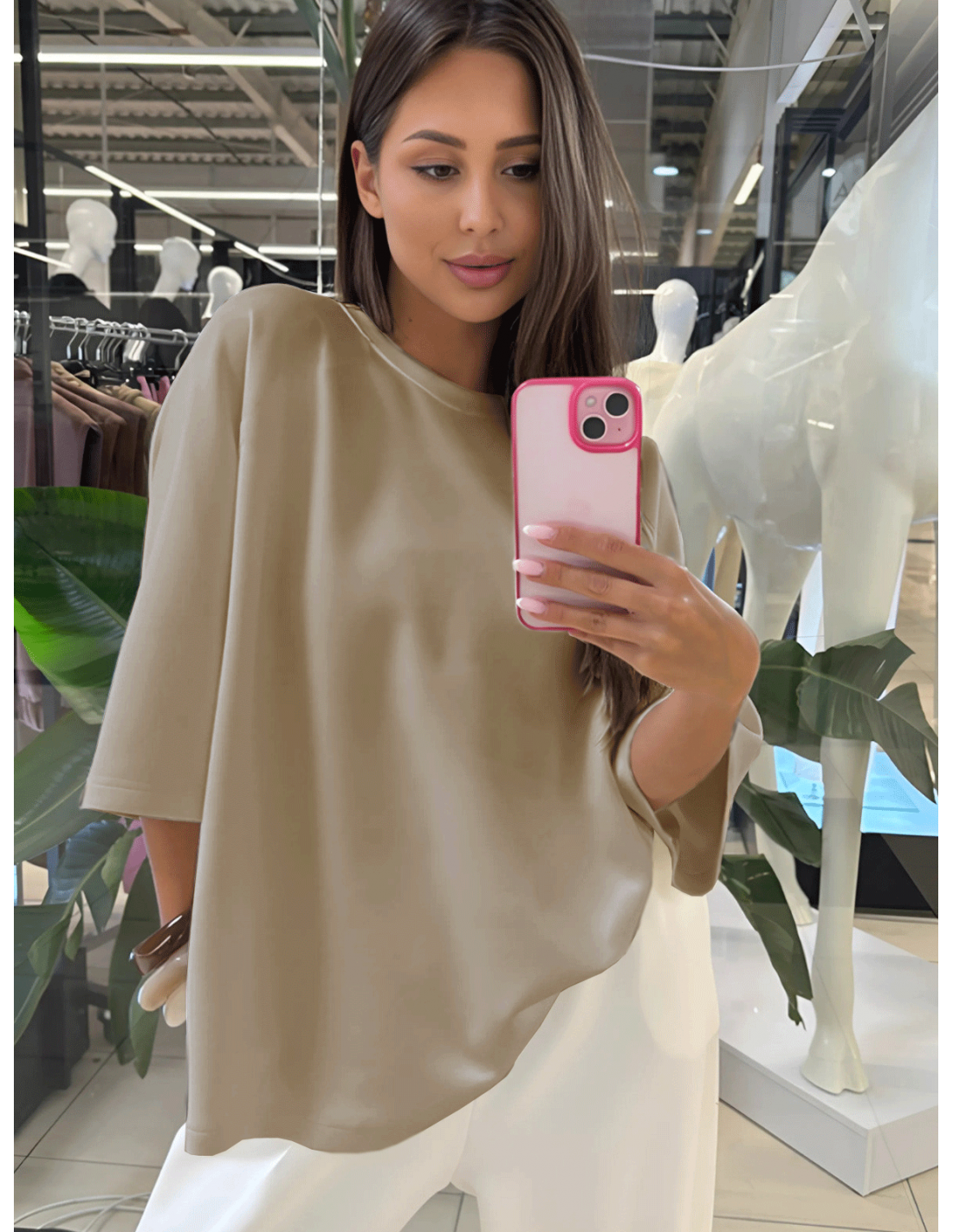Bluzka oversize z wiskozą JORELLE - beżowa