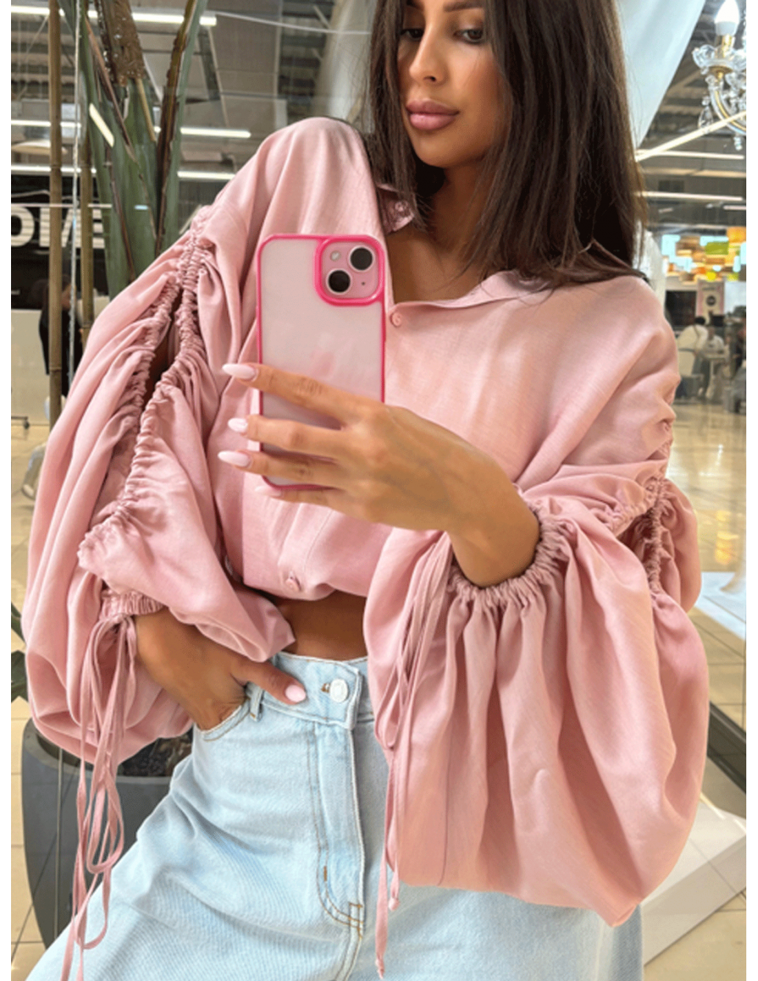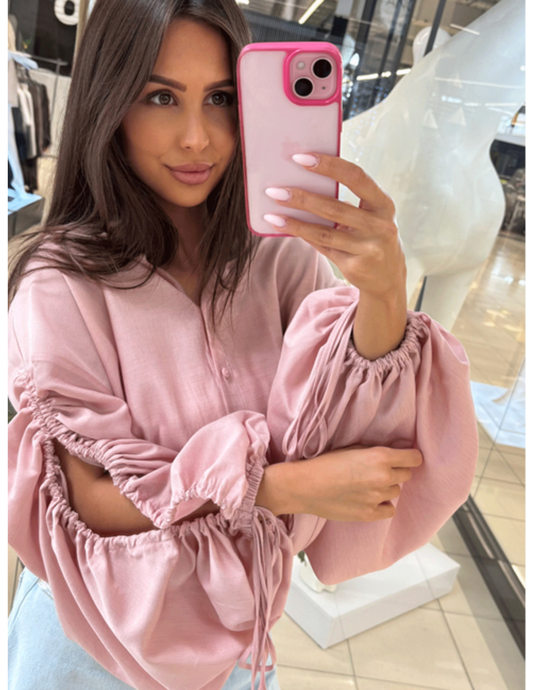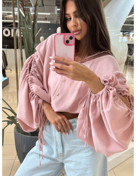 Bawełniana koszula ze ściągaczami SELENA - brudny róż