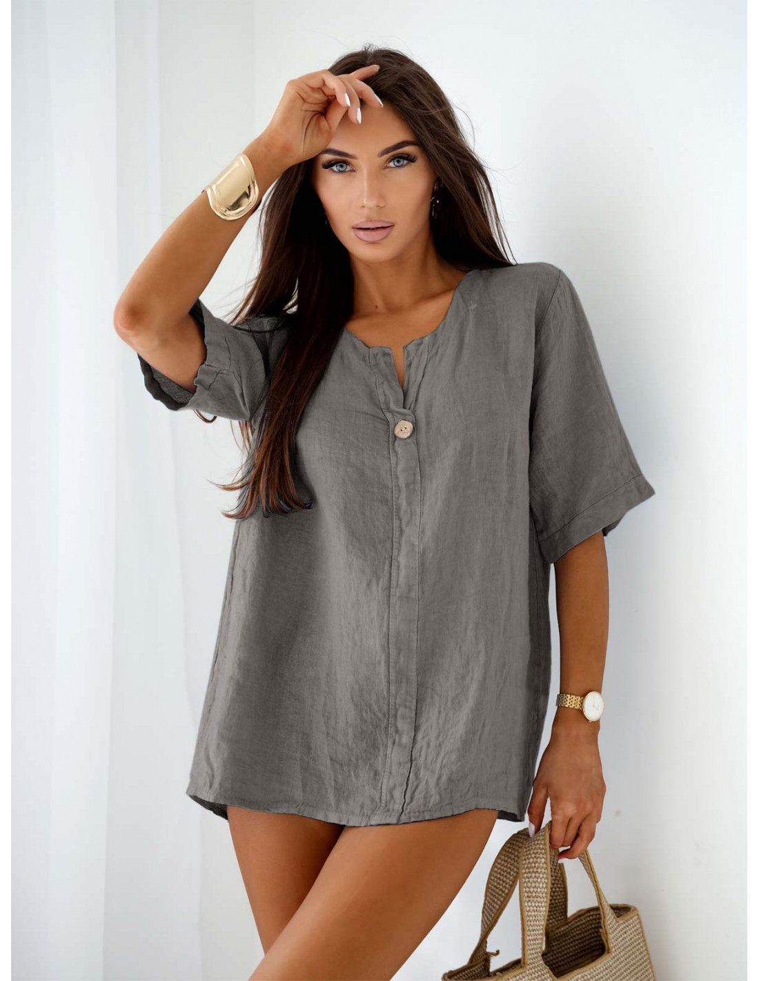 Lniana bluzka z krótkim rękawem BIANA - szara