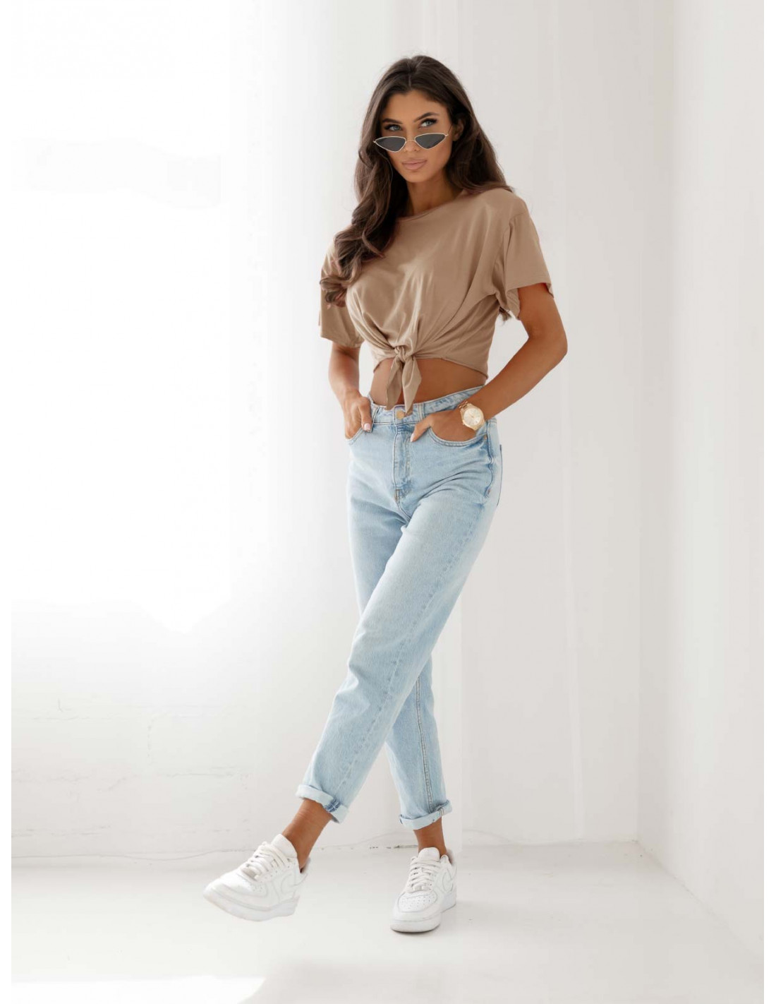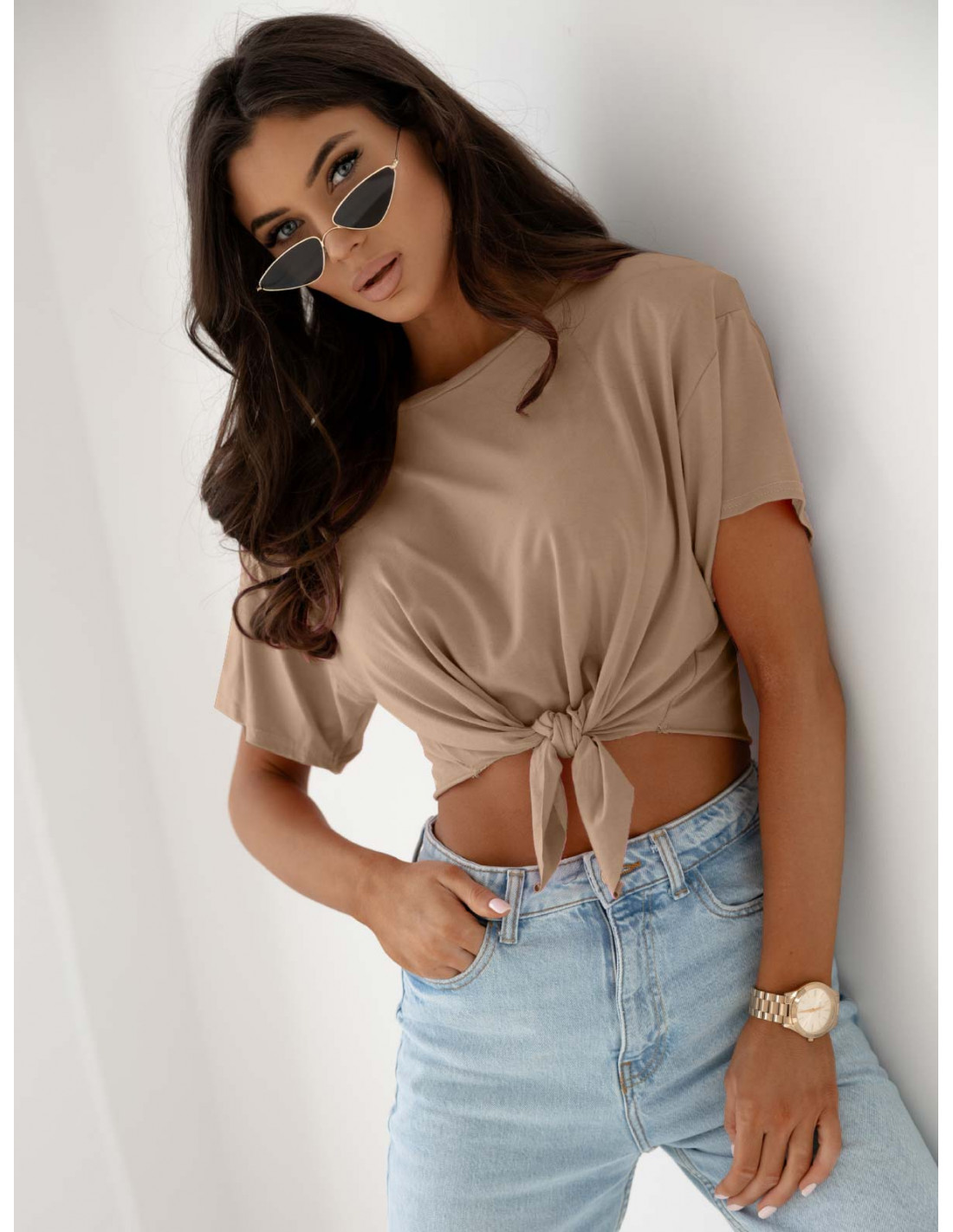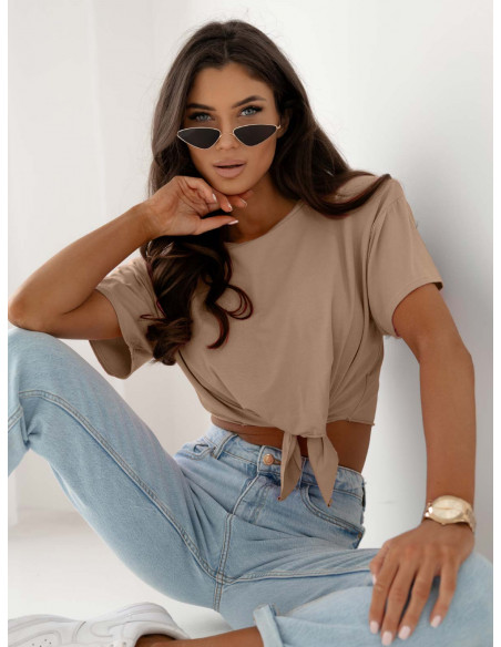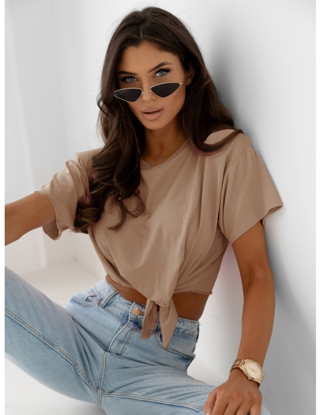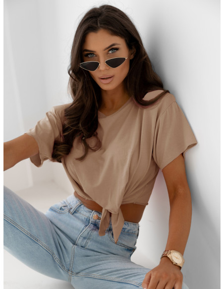 Z wiązanym beżowym topem stworzysz niezapomniane stylizację.