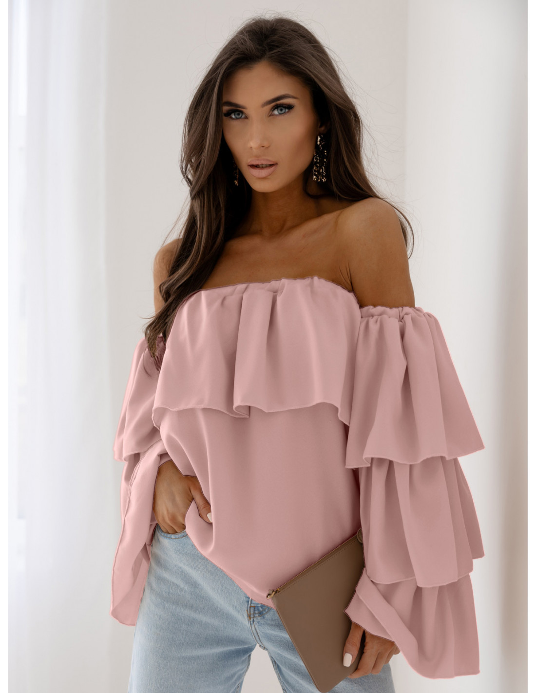 WP bluzka hiszpanka z długim rękawem - brudny róż