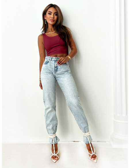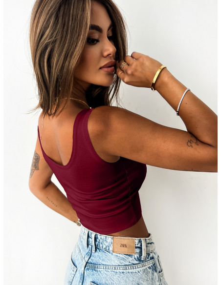 Klasyczny crop top na szerokich ramiączkach LILU - bordowy
