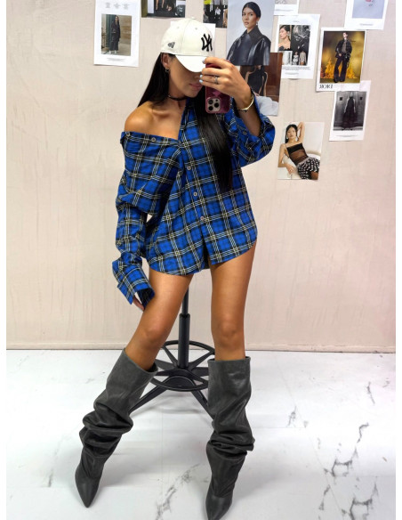 Flanelowa koszula oversize w kratę TABBY - niebieska