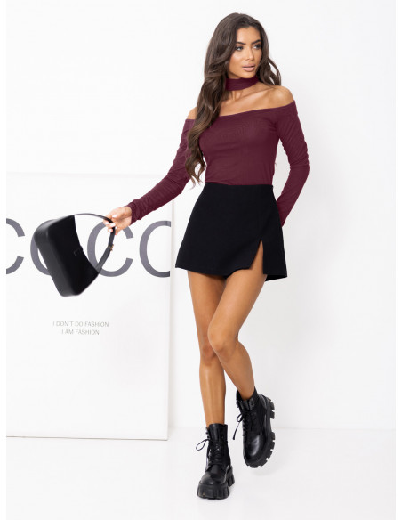 Bluzka hiszpanka z wiskozy z chokerem RELAVIA - śliwkowa