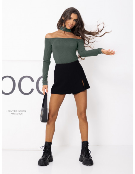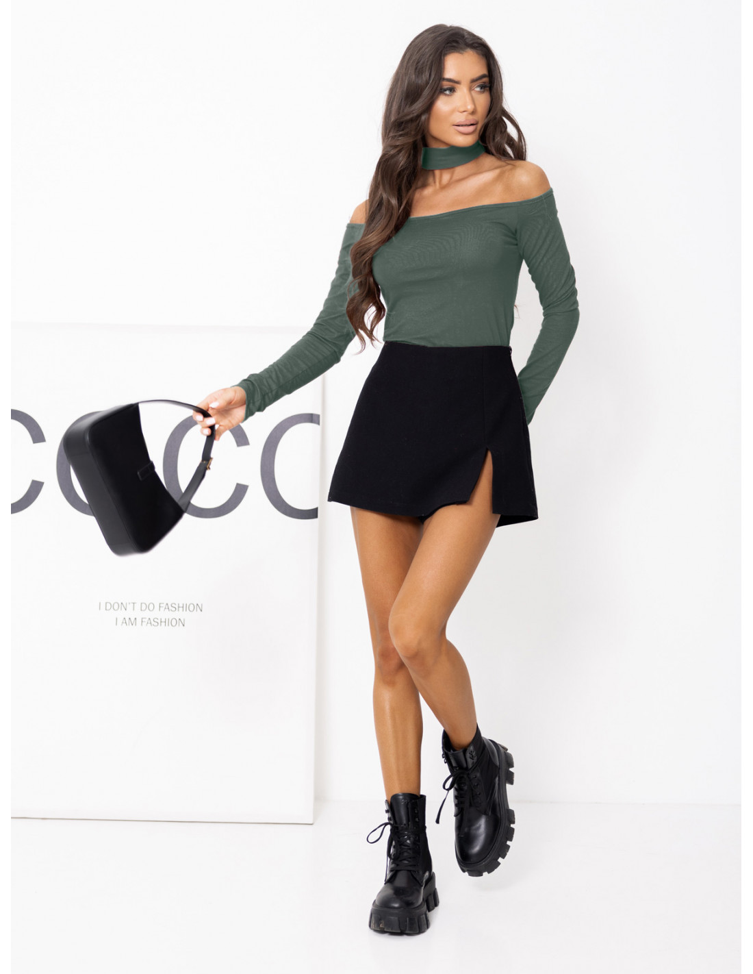 Bluzka hiszpanka z wiskozy z chokerem RELAVIA - khaki