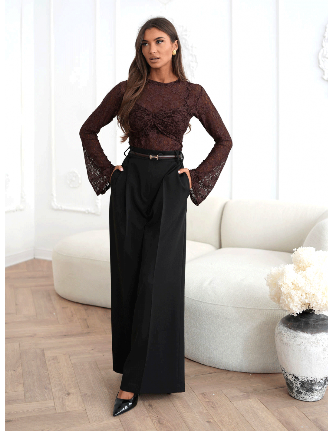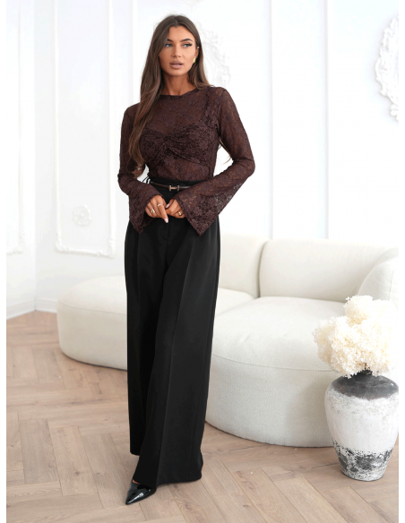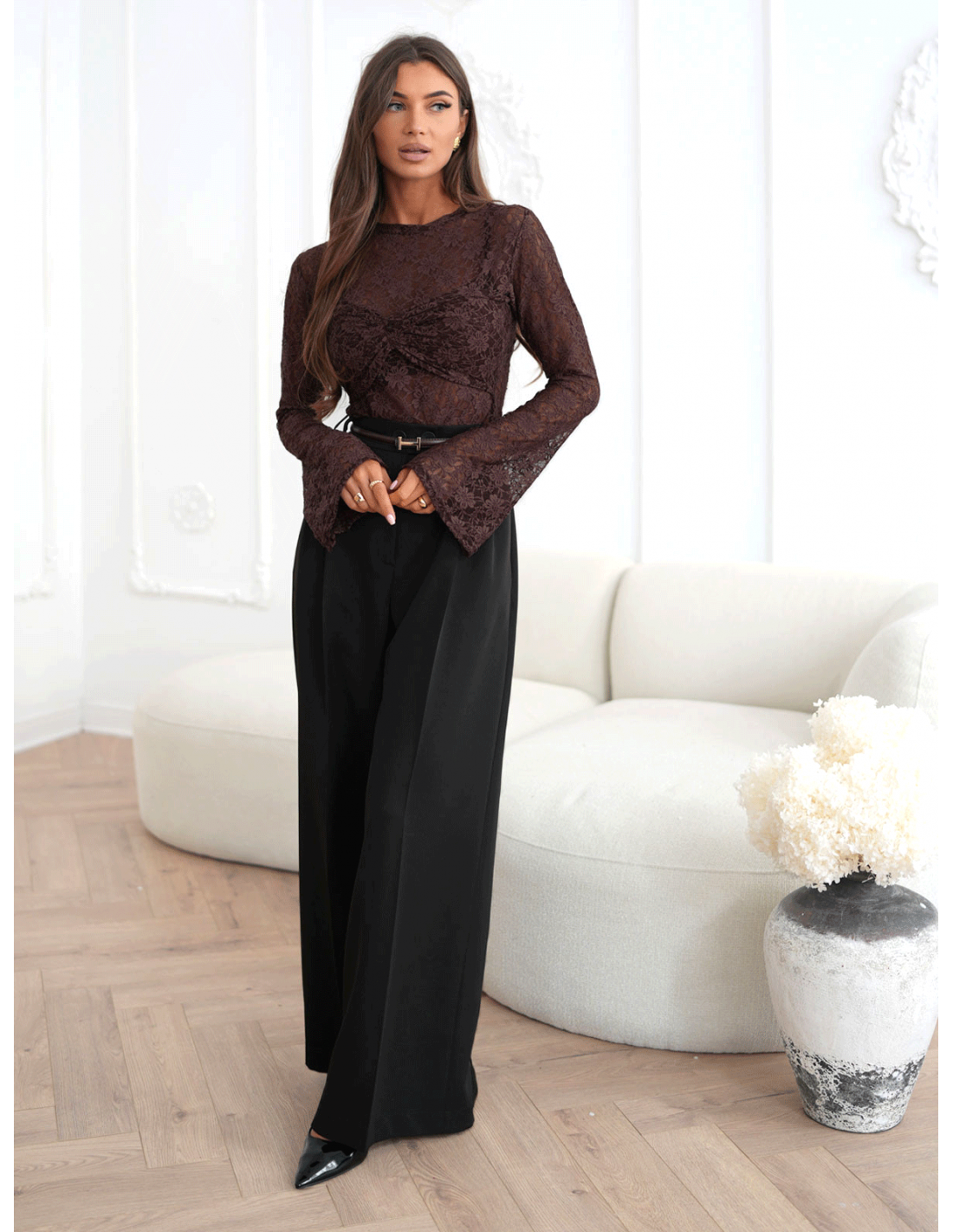 Elegancka koronkowa bluzka w kolorze czekoladowym podkreśli urodę i doda stylizacji luksusowego charakteru.