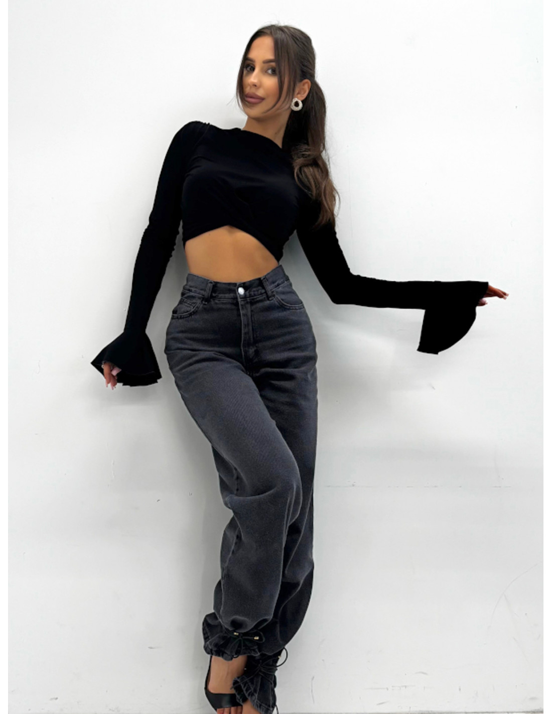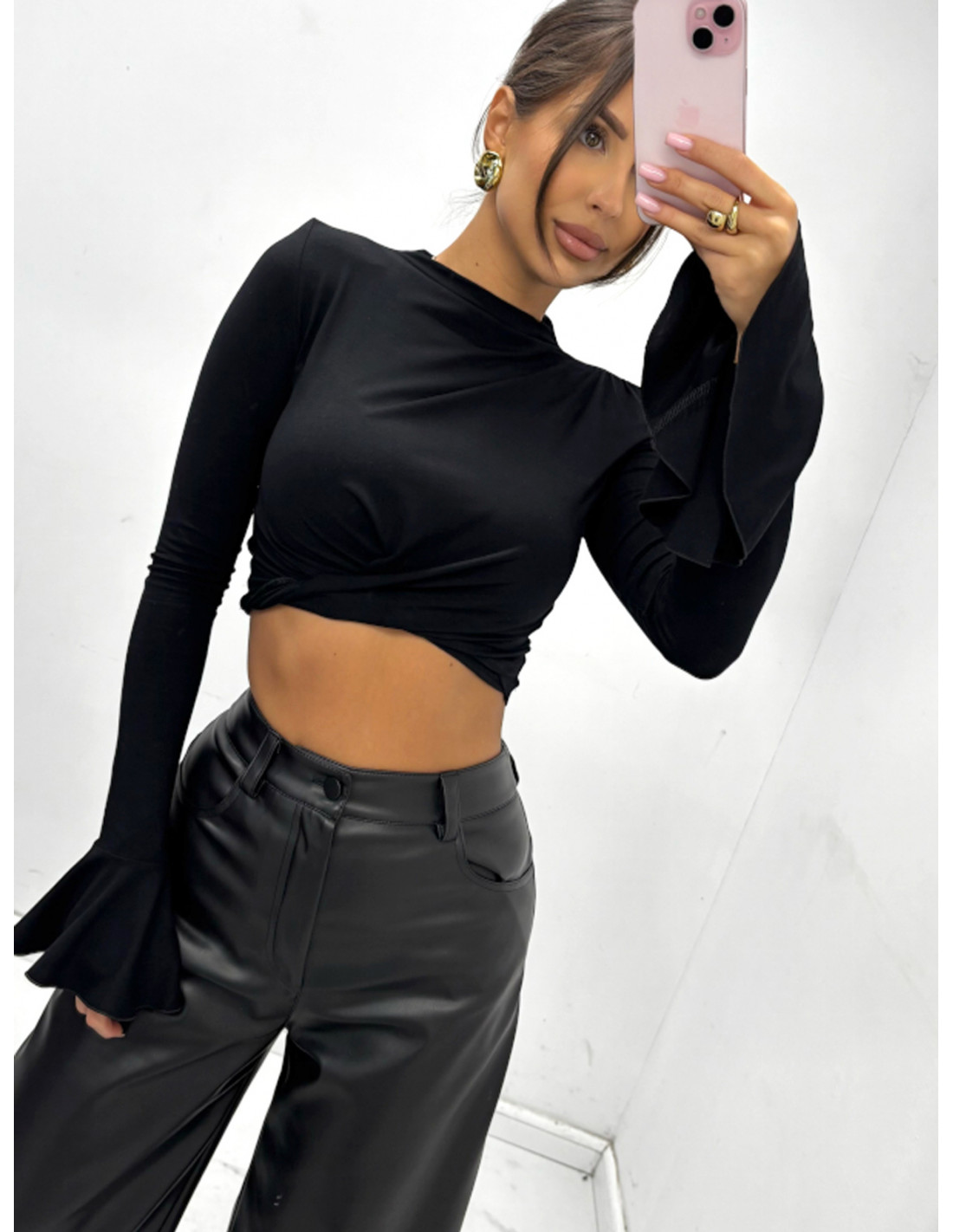 Wiskozowa krótka bluzka z rękawem dzwonek TOLAN - czarna