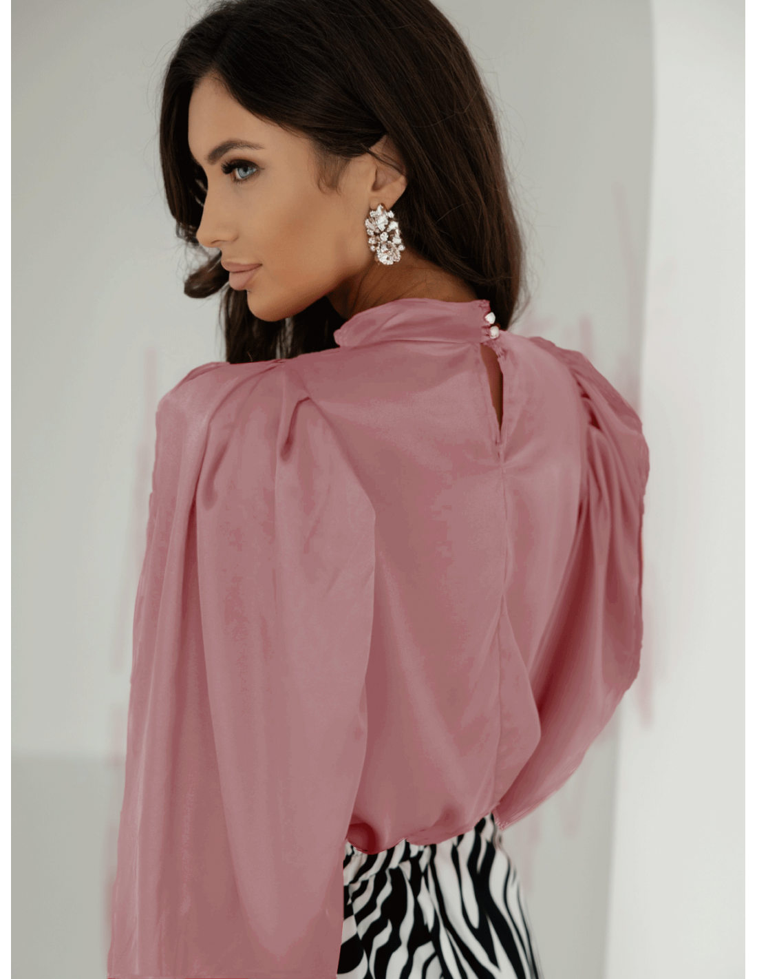 WP Satynowa bluzka z bufiastymi rękawami - brudny róż