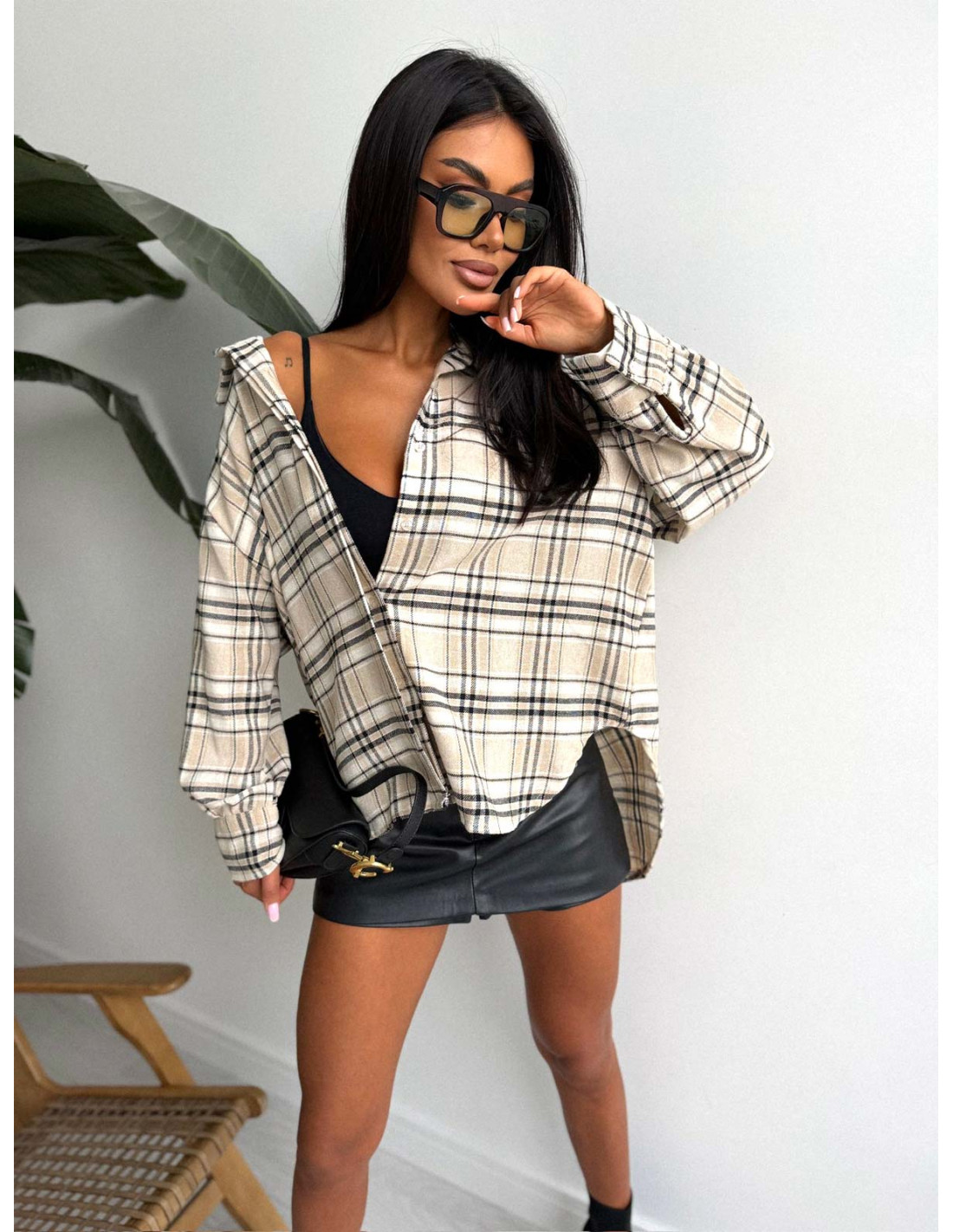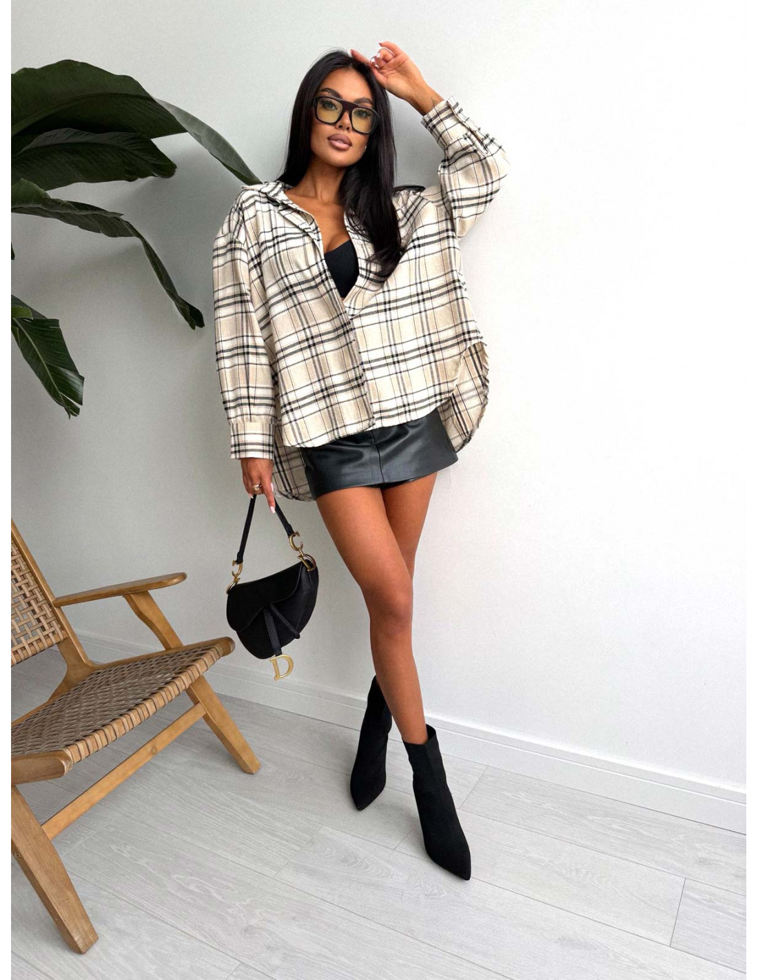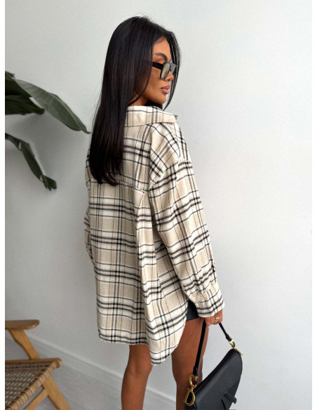 Bawełniana koszula w kratę oversize CELTIA - beżowa