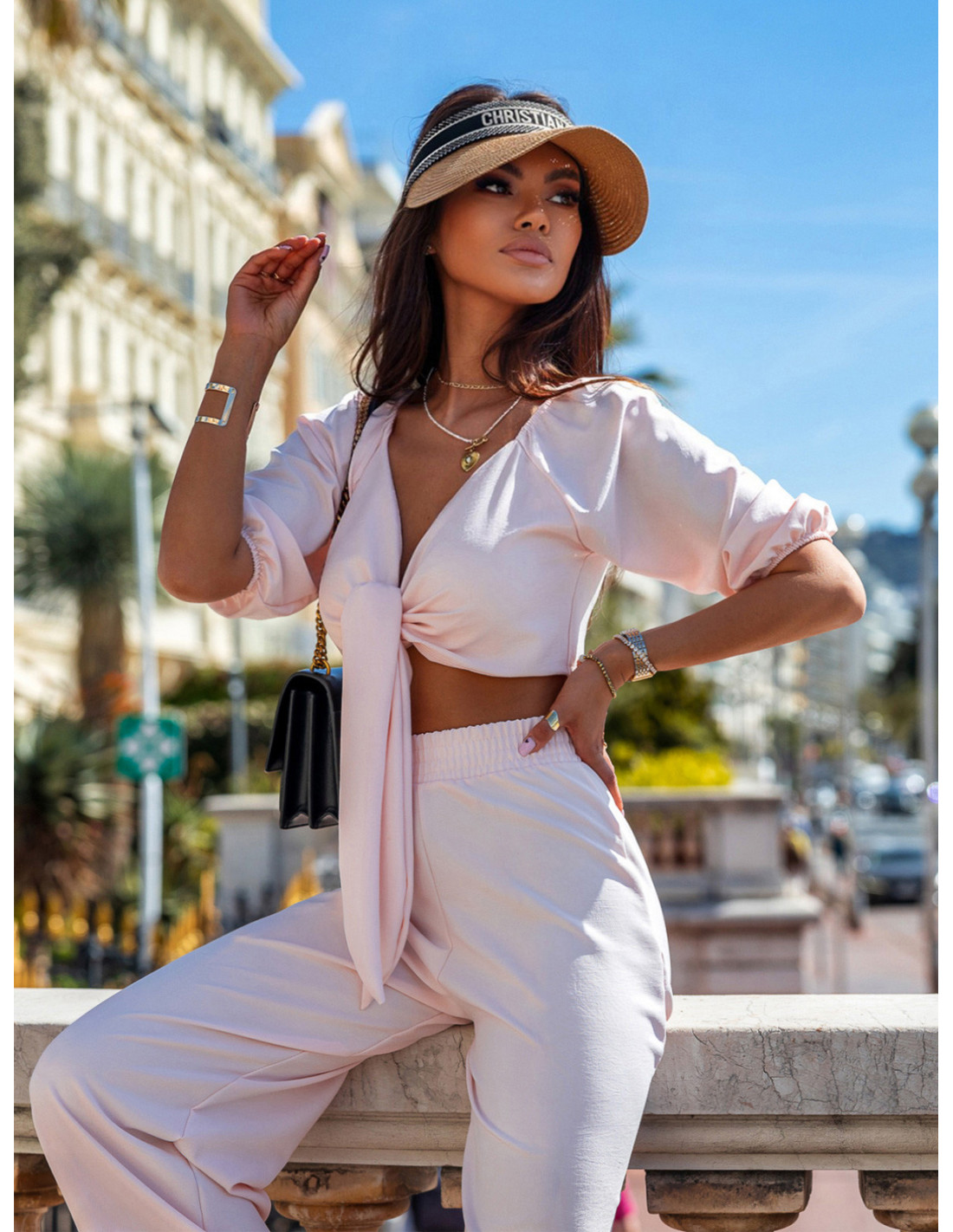 WP wiązany top - pudrowy róż