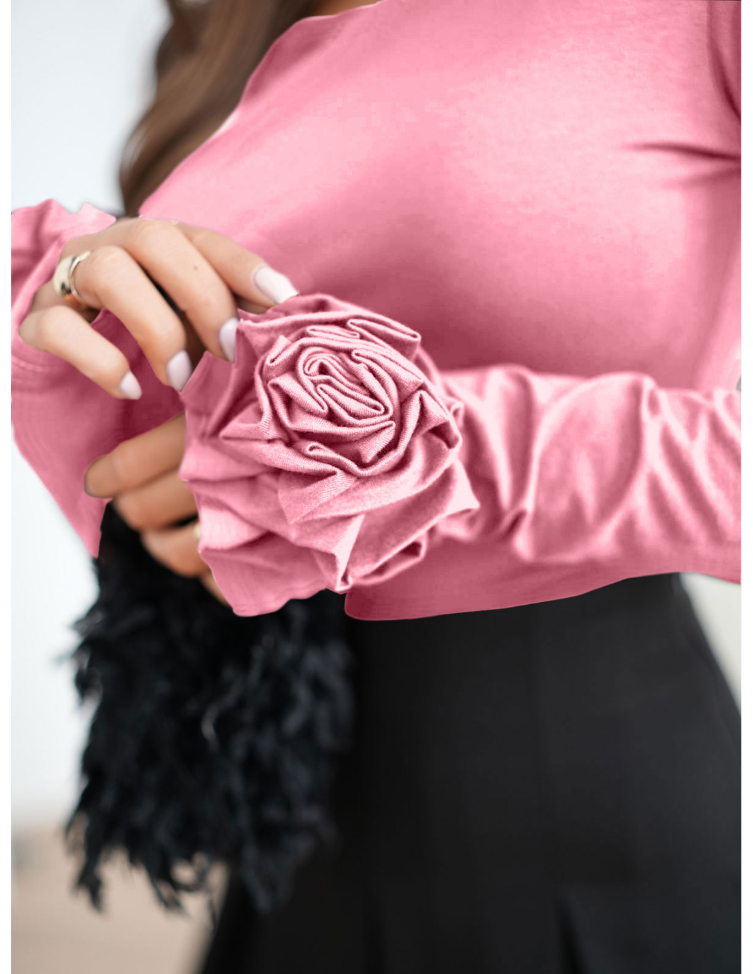 Wiskozowa bluzka z różą na rękawie ELIJA - pudrowy róż