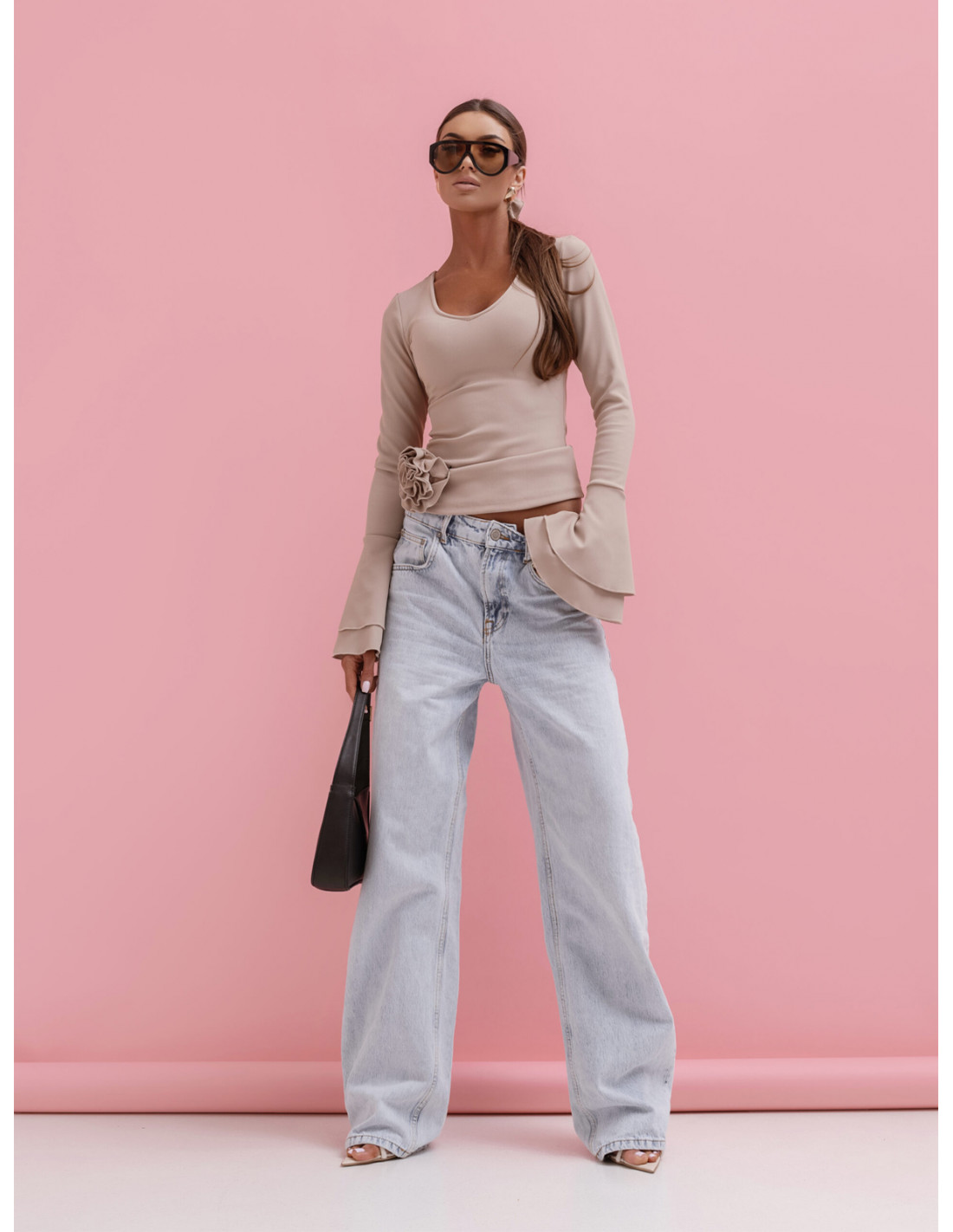 Efektowne rękawy zakończone falbanami przyciągają uwagę i dodają bluzce wyjątkowego, fashionowego akcentu.