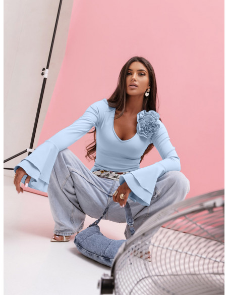 Prążkowana bluzka z falbanami na rękawach AVELLINA - błękitna