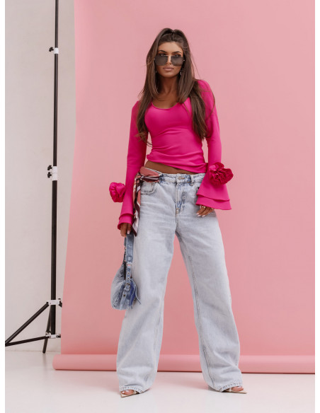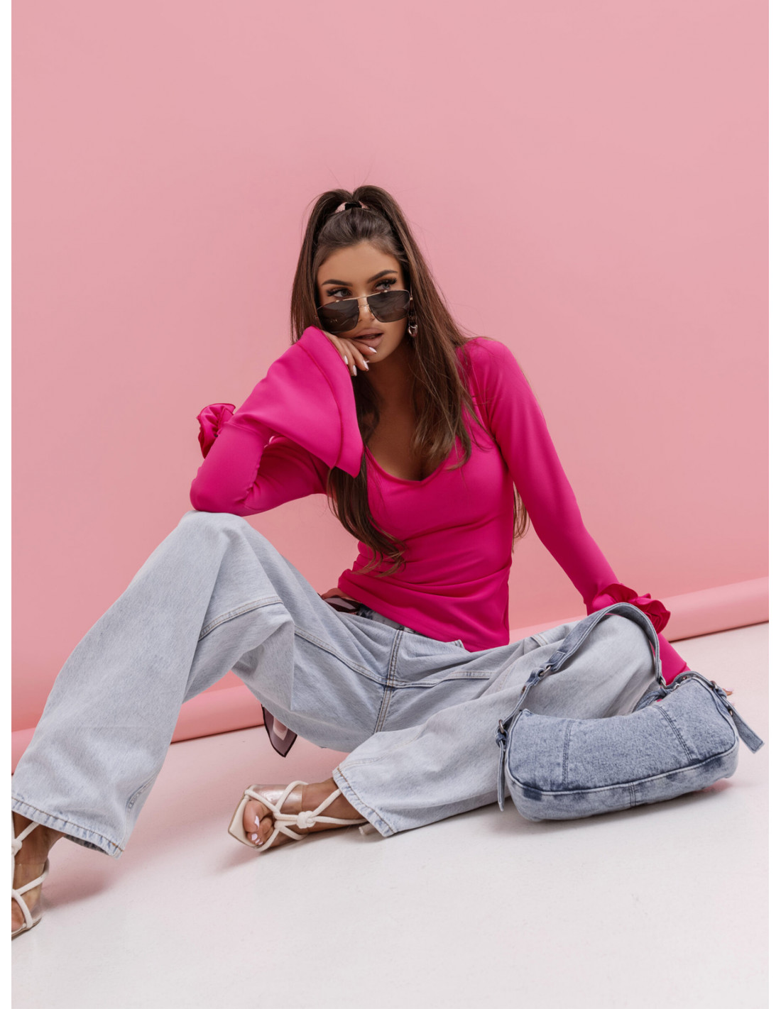 Prążkowana bluzka z falbanami na rękawach AVELLINA - fuksjowa