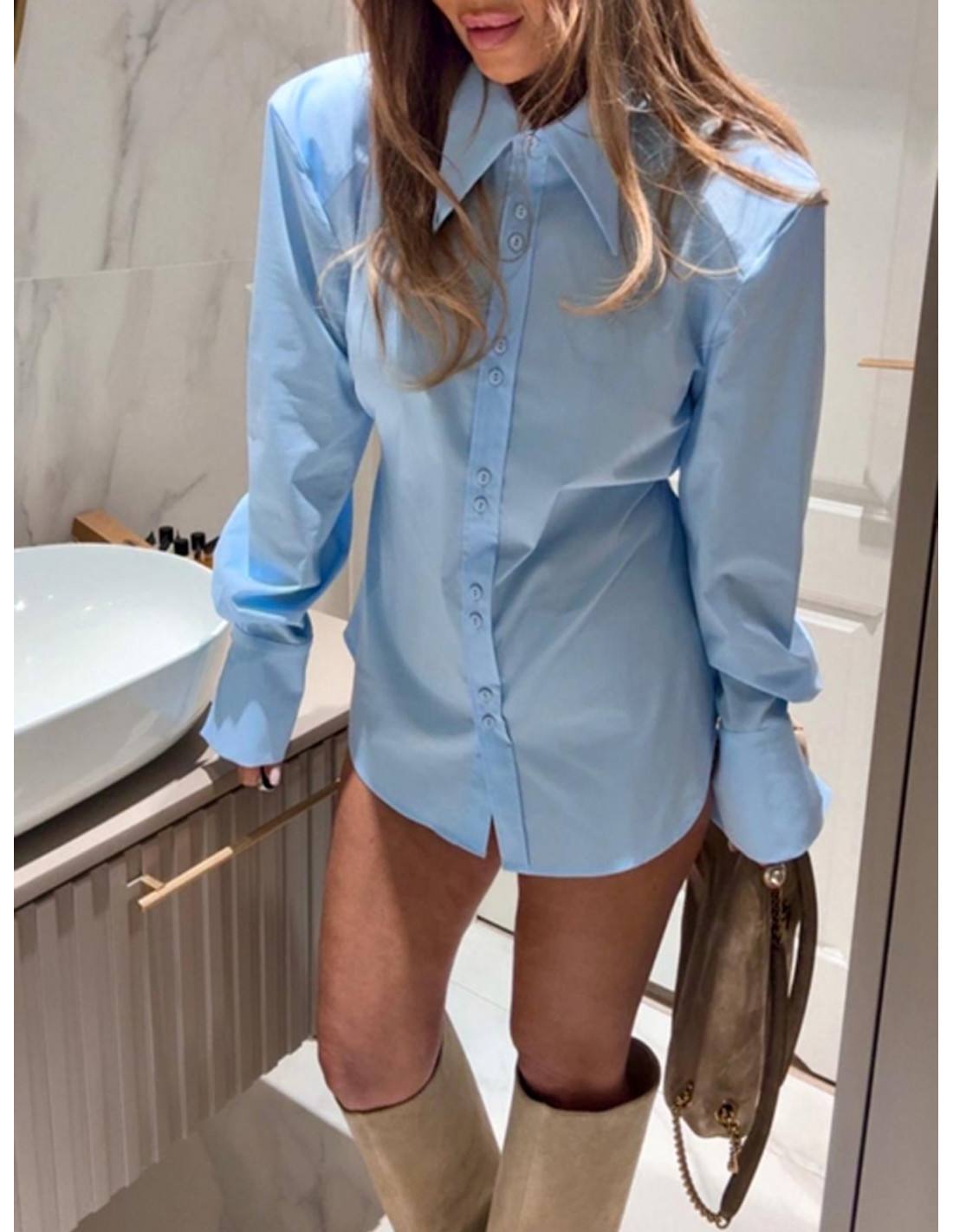 Elegancka bawełniana koszula z mankietami DAKARA - błękitna