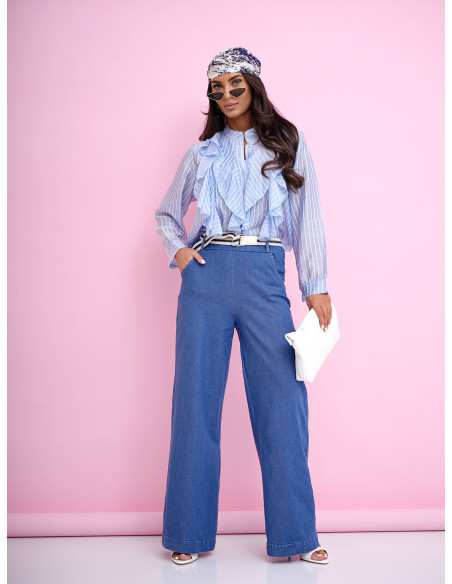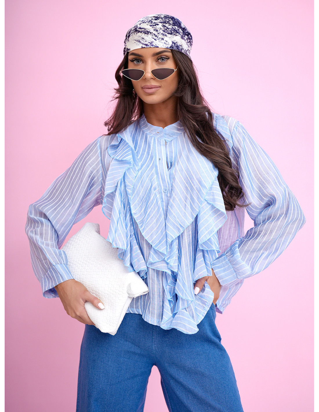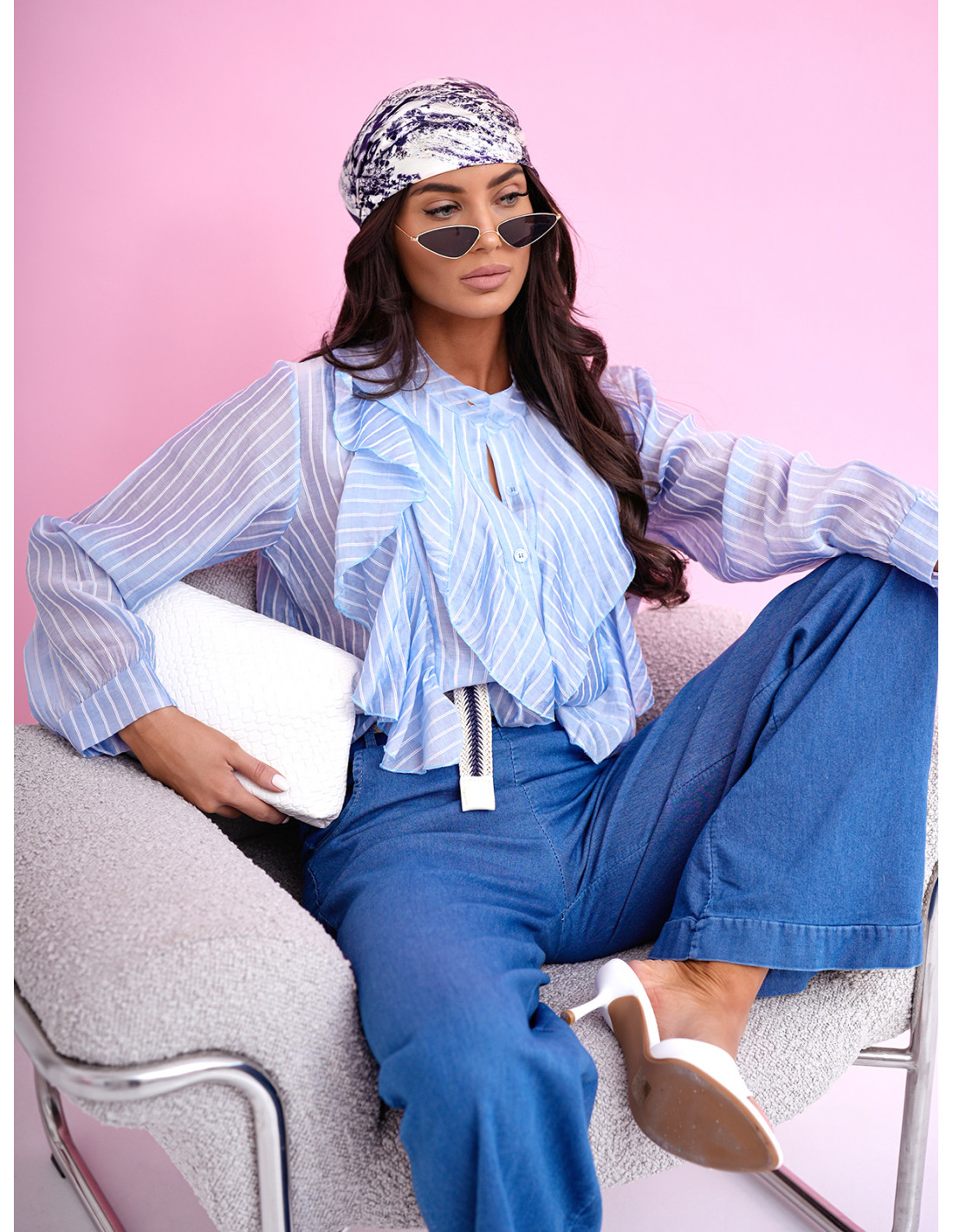 Kobieca koszula z tencelu z falbanami FABIA - błękitna