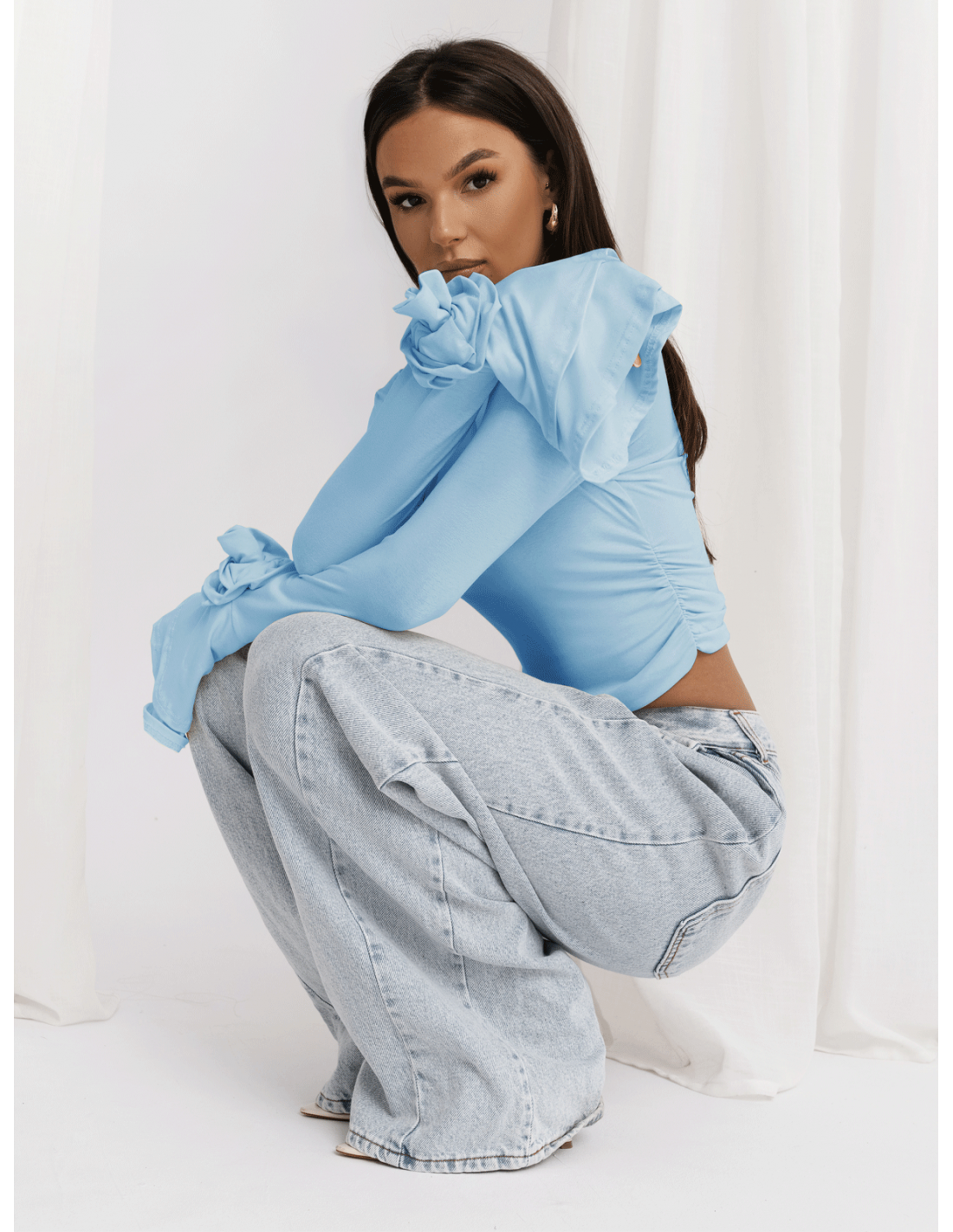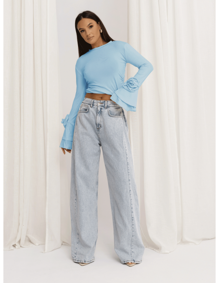 Wiskozowa bluzka z szerokimi rękawami REINE - błękitna
