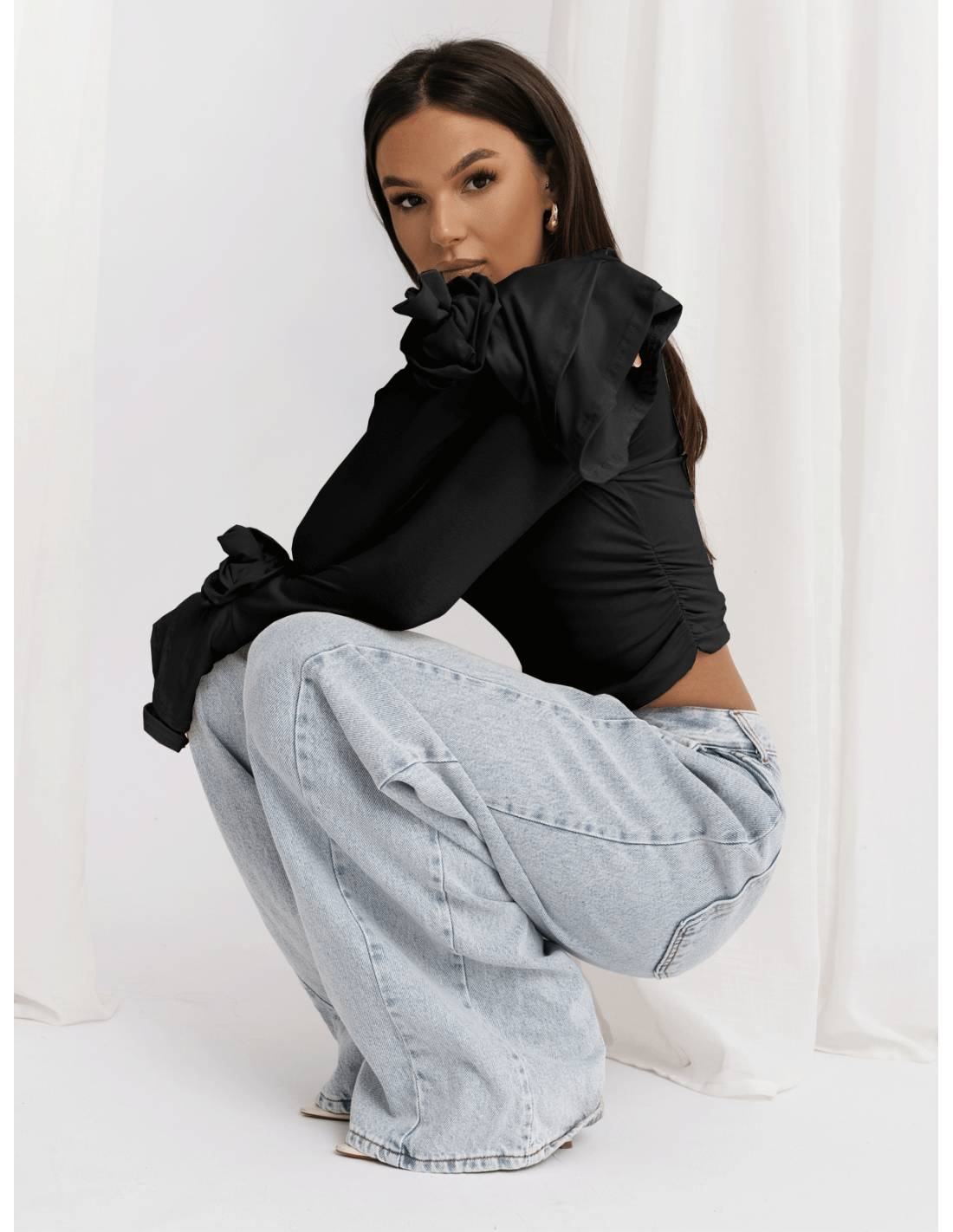 Wiskozowa bluzka z szerokimi rękawami REINE - czarna