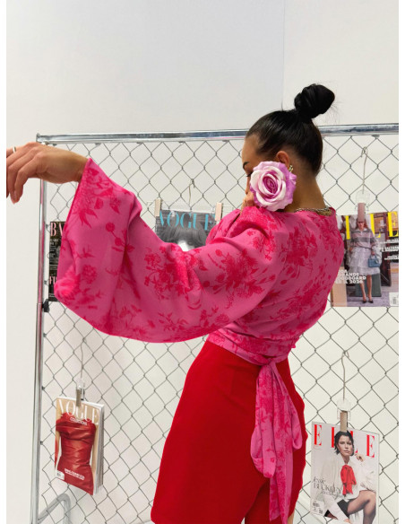 Wzór 1 - czerwone kwiaty na różowym tle.
