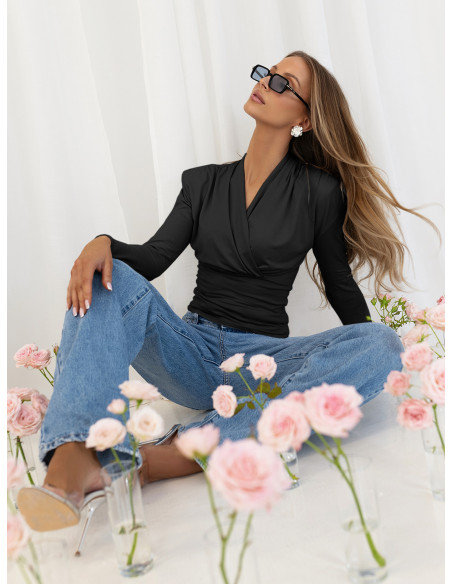 Wiskozowa bluzka z przekładanym dekoltem AMBER - czarna
