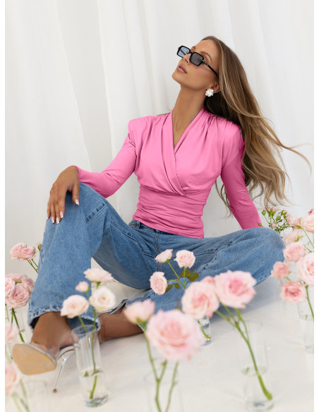 Wiskozowa bluzka z przekładanym dekoltem AMBER - pudrowy róż