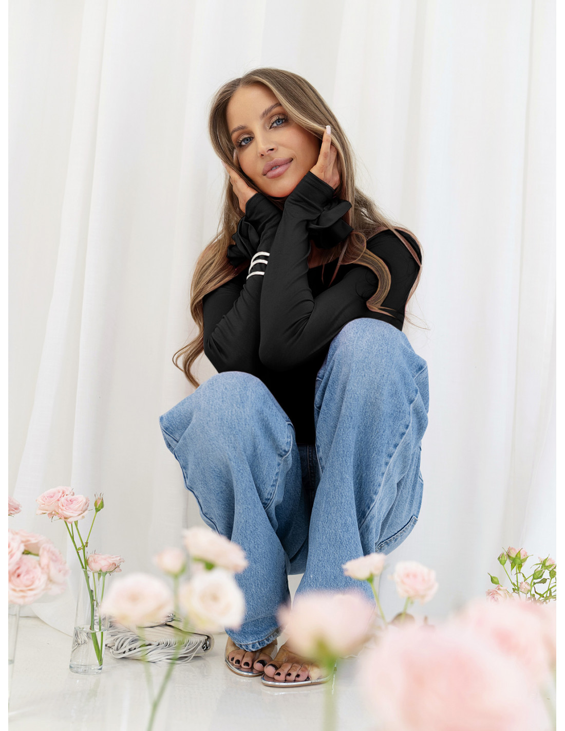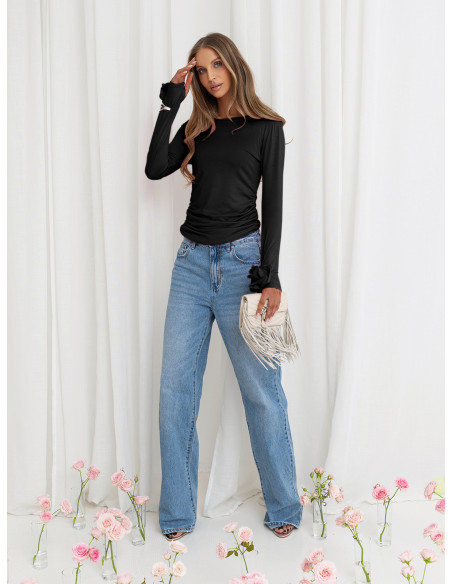 Wiskozowa bluzka z ozdobnymi różami JARISA - czarna